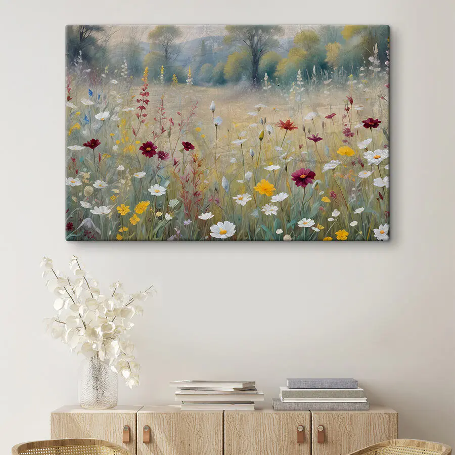 Stel je voor dat je door een prachtige zomerweide loopt, met al die prachtige, levendige wilde bloemen die zachtjes wuiven in de wind. Deze canvasprint legt dat magische moment perfect vast. Het is alsof je een stukje natuur in huis haalt. De kleuren zijn levendig en opbeurend en je krijgt een geweldig gevoel van rust als je ernaar kijkt. Perfect om elke ruimte op te fleuren – of het nu je woonkamer, slaapkamer of zelfs een kantoor is. Hang hem op waar je een kleine oppepper nodig hebt. Het is warm en uitnodigend en herinnert je eraan om het wat rustiger aan te doen en de kleine vreugden in het leven te waarderen. Een opvallend stuk dat zeker zal leiden tot een gesprek en bewondering van gasten!