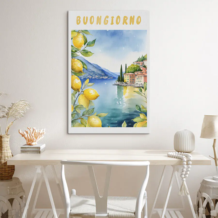De charmante dorpjes, rustige wateren en levendige citroenen maken het een perfecte toevoeging aan elke kamer. Het heeft die vredige vibe waardoor je je in een klein stukje paradijs waant – zonder je huis te verlaten!