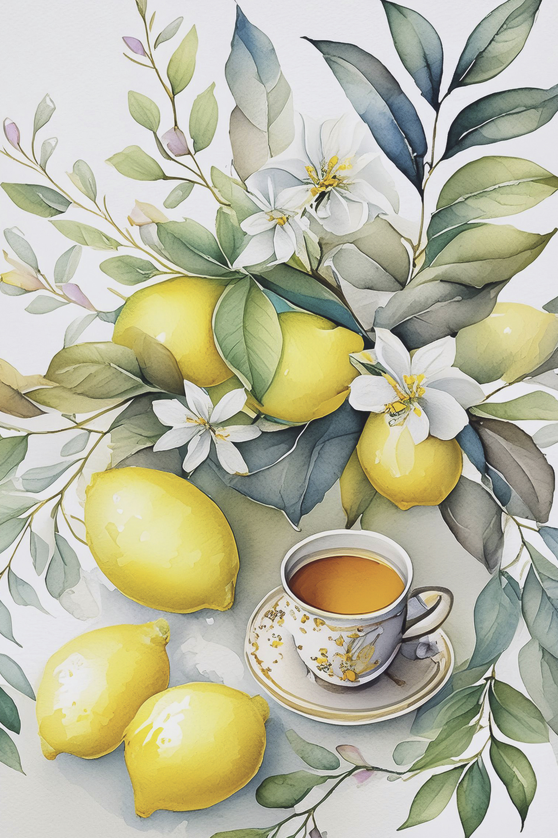 Ooit gedacht dat je keuken wel wat frisheid kon gebruiken? Dan is deze canvasprint “Citroenen en thee tussen de bladeren” misschien precies de oppepper die je zoekt. Stel je voor: levendige citroenen naast een gezellig kopje thee, alles genesteld tussen delicate bladeren. Het is alsof je dat perfecte ochtendmoment vastlegt waarop de zon naar binnen stroomt en alles helder en luchtig aanvoelt. De aquarelstijl voegt een zachte, uitnodigende touch toe – geen scherpe randen hier! Als je dit aan de muur hangt, krijg je misschien wel zin in een citroenbrouwsel. Ideaal om elke ruimte op te fleuren, het is een gezellige maar verkwikkende twist voor je inrichting.