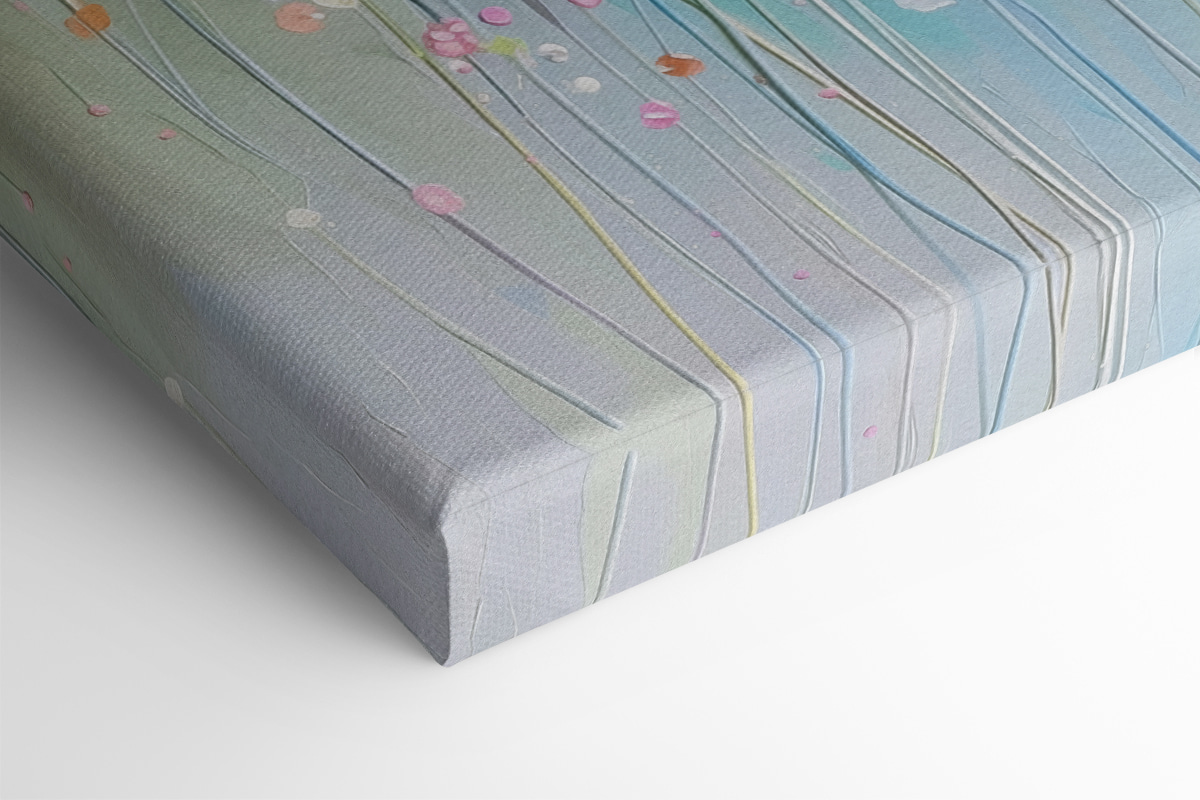 Fleur elke kamer op met deze vrolijke canvasprint van dansende bloemen tegen een rustgevende blauwe achtergrond. Het is als een frisse lentebries, vol vrolijke kleuren die de ruimte direct levendig maken. Stel je voor dat je bij het raam zit, nippend aan je ochtendkoffie, terwijl dit levendige kunstwerk zachte verhalen over bloeiende tuinen fluistert. Perfect voor een woonkamer of een gezellig hoekje, het voegt een vleugje natuur toe zonder de gieter. De speelse penseelstreken nodigen je uit om te verdwalen in een bloemrijke dagdroom en herinneren iedereen eraan dat schoonheid vaak maar een blik verwijderd is.