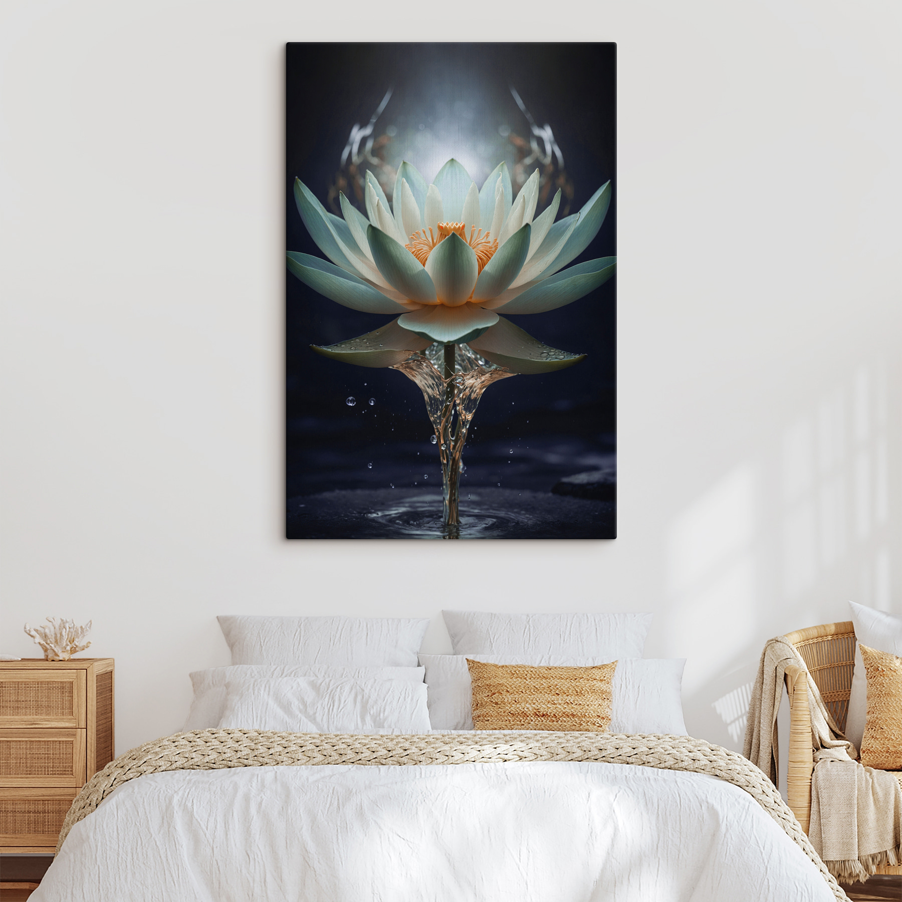 Transformeer je ruimte met “Canvas Schilderijen Radiant Lotus Rising from Water”. Dit prachtige stuk vangt de delicate schoonheid van een lotusbloem in volle bloei, schijnbaar zwevend boven glinsterend water. De zachte kleuren en serene sfeer kunnen elke kamer veranderen in een kleine oase. Stel je voor dat je je woonkamer binnenloopt en meteen een gevoel van rust ervaart, als een zachte knuffel voor de ziel. Perfect voor bloemenliefhebbers of iedereen die op zoek is naar een unieke toets. Dit kunstwerk is niet zomaar decor; het vertelt een verhaal van veerkracht en gratie. Voeg een vleugje charme van de natuur toe aan je muren!