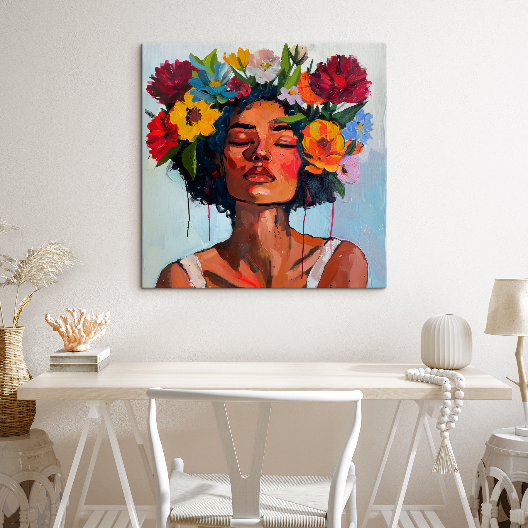 Duik in de levendige wereld van deze prachtige canvasprint, met een vrouw getooid met een boeket kleurrijke bloemen in haar haar. Het is alsof je een vrolijke tuin binnenshuis haalt, perfect om een vleugje vreugde toe te voegen aan elke kamer. Stel je voor dat je elke dag wakker wordt met zo’n stralende glimlach – wie zou zich niet opgebeurd voelen? De krachtige penseelstreken en levendige kleuren inspireren creativiteit en warmte, waardoor het een heerlijke gespreksstarter is. Hang het boven je bank of in een gezellig leeshoekje en laat de schoonheid van dit kunstwerk dromen en een glimlach ontlokken aan iedereen die het ziet. Het is meer dan alleen kunst; het is een dagelijkse herinnering om vreugde te vinden in de kleine dingen, zoals het perfecte kopje koffie of een zonnige middag!