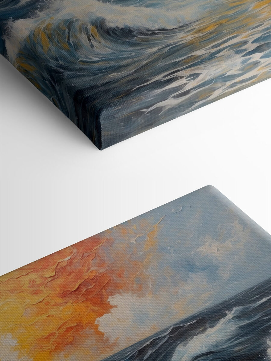 Stel je voor dat je na een lange dag thuiskomt en dit doek aan je muur ziet hangen – het is net een serene ontsnapping in je woonkamer. Het schilderij van een man in het water heeft een magische uitstraling. Misschien denkt hij na over de mysteries van het leven of geniet hij gewoon van een mystieke wandeling over de golven. Het rijke blauw en de vurige zonsondergang smelten samen in dit ongelooflijke tafereel. Het is meer dan kunst; het is een ervaring die avontuur en contemplatie fluistert. Perfect om een gesprek op gang te brengen tijdens een etentje of gewoon om te dagdromen op een zondagmiddag.