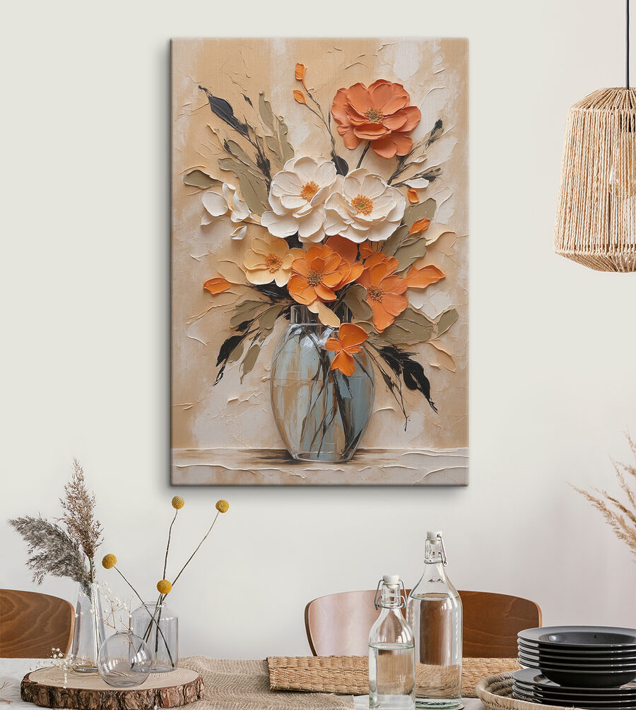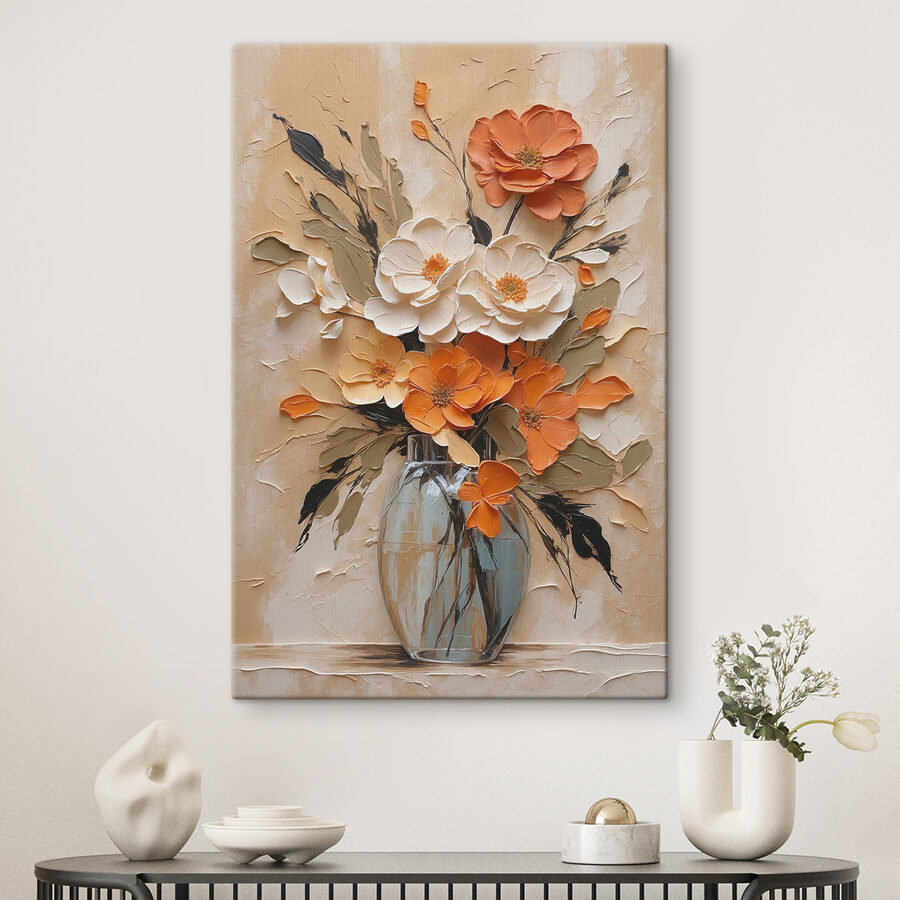 Stel je voor dat je je woonkamer binnenloopt en begroet wordt door een uitbarsting van kleur die net zo verfrissend is als een lentemorgen. Dit “Canvas Schilderijen Schilderij van bloemen in een vaas” is niet zomaar een kunstwerk – het is een persoonlijkheid die wacht om je ruimte op te fleuren. Gewaagd oranje en zacht wit mengen zich als oude vrienden en bieden zowel warmte als elegantie. Stel je voor: een druilerige maandag, je nipt van je koffie, werpt stiekem een blik op dit meesterwerk en voilà – onmiddellijke oppepper. Het is als een boeket dat nooit verwelkt en altijd je goede humeur stimuleert. Perfect voor elke muur die wat extra vrolijkheid nodig heeft.