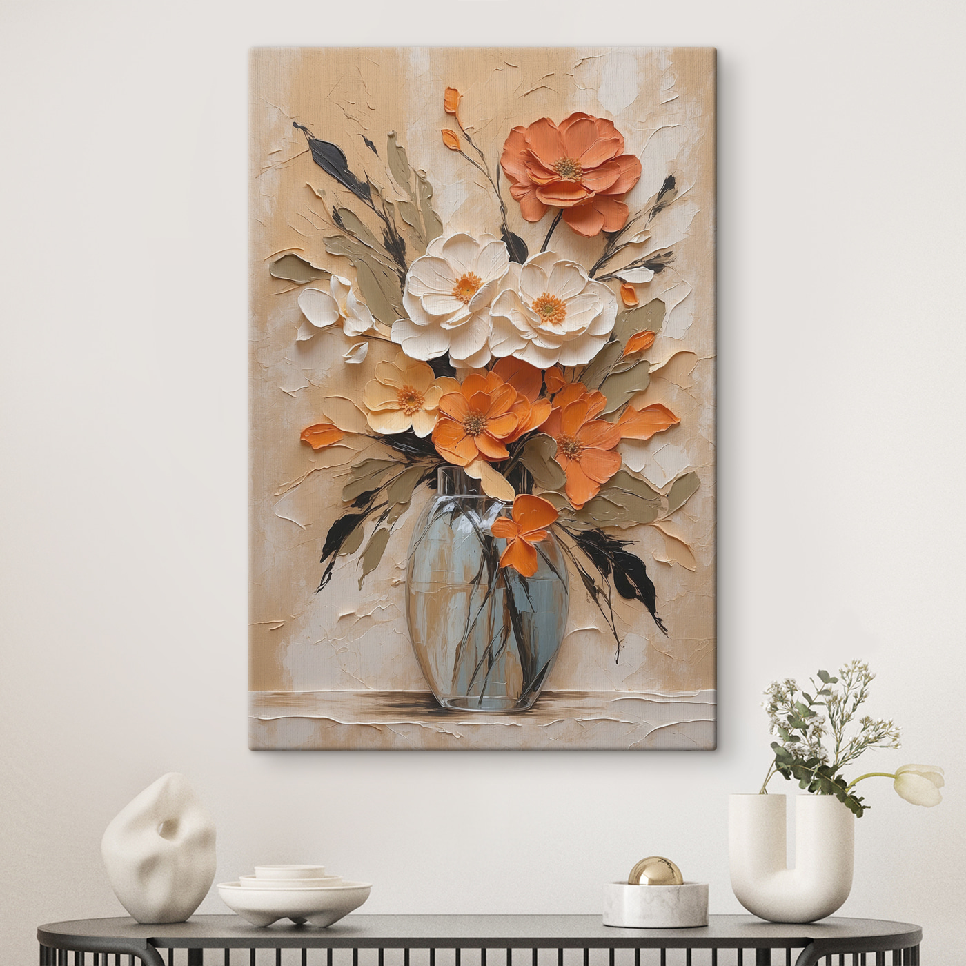 Stel je voor dat je je woonkamer binnenloopt en begroet wordt door een uitbarsting van kleur die net zo verfrissend is als een lentemorgen. Dit “Canvas Schilderijen Schilderij van bloemen in een vaas” is niet zomaar een kunstwerk – het is een persoonlijkheid die wacht om je ruimte op te fleuren. Gewaagd oranje en zacht wit mengen zich als oude vrienden en bieden zowel warmte als elegantie. Stel je voor: een druilerige maandag, je nipt van je koffie, werpt stiekem een blik op dit meesterwerk en voilà – onmiddellijke oppepper. Het is als een boeket dat nooit verwelkt en altijd je goede humeur stimuleert. Perfect voor elke muur die wat extra vrolijkheid nodig heeft.