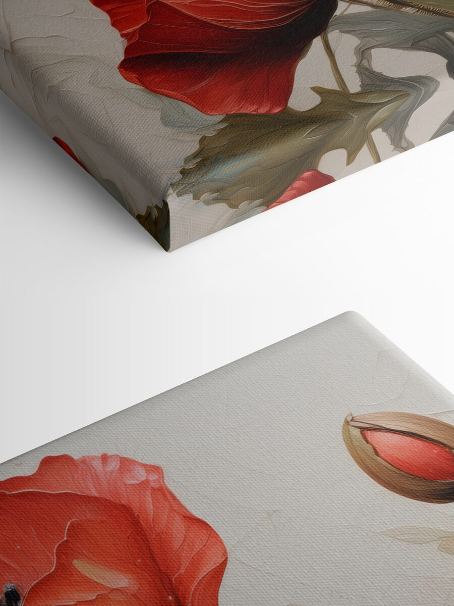 Helderrode bloemen in elegante bloei geven elke ruimte direct een sprankelende energie. Stel je voor dat je een kamer binnenloopt waar deze schoonheden je begroeten, hun bloemblaadjes bijna fladderend van leven. Ze stralen warmte uit, als een zonnige dag gehuld in een gezellige sfeer. Perfect voor een woonkamer of een vrolijke keuken, dit canvas is als een frisse wind. Het is dat kleine stuk dat fluistert: “Doe alsof je thuis bent. Vrienden zien het misschien zelfs aan voor een tuin, alleen dan zonder de pollen! Laat dit kunstwerk de conversatiestarter worden die het verdient te zijn.