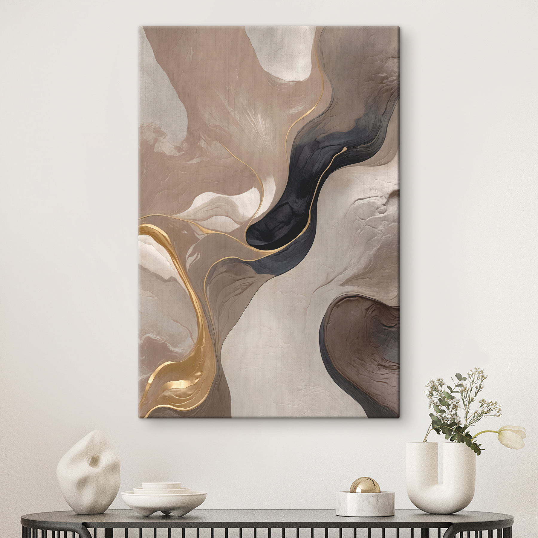 Stel je voor dat je een kamer binnenloopt en begroet wordt door wervelingen van zachte kleuren die over de muur dansen. Deze canvasprint, met zijn abstracte kunstzinnigheid, voelt aan als een frisse wind. De zachte stroom van romige tinten en diepe tonen creëert een serene sfeer, perfect om tot rust te komen na een lange dag. Het is bijna alsof de kunst een eigen geheimtaal heeft, die kalmte uitstraalt en een gevoel van verwondering opwekt. Gasten kunnen verdwalen in de lagen en nadenken over de verhalen die elke streek zou kunnen vertellen. Als je deze schoonheid op een lege muur plaatst, kan die ruimte veranderen in een inspirerend toevluchtsoord. Perfect voor liefhebbers van unieke decoraties, want wie wil er nu niet een beetje kunstzinnige magie in huis?