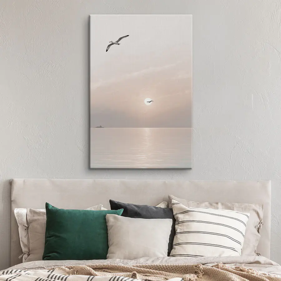 Stel je voor dat deze prachtige canvasprint aan de muur hangt, een zeemeeuw die moeiteloos over het kalme water glijdt alsof hij zich nergens zorgen over maakt! De zachte tinten van de zonsondergang creëren een dromerige achtergrond en nodigen uit tot een vredige sfeer in elke kamer. Perfect voor die dagen waarop het idee van een strandvakantie als een verre droom aanvoelt, verandert dit stuk elke ruimte in een serene ontsnapping. Het is alsof je een raam naar de zee hebt zonder de zilte lucht… hoewel een lekker zeebriesje geen kwaad kan, toch? Laat dit kunstwerk aanzetten tot dagdromen en misschien zelfs een beetje reislust!