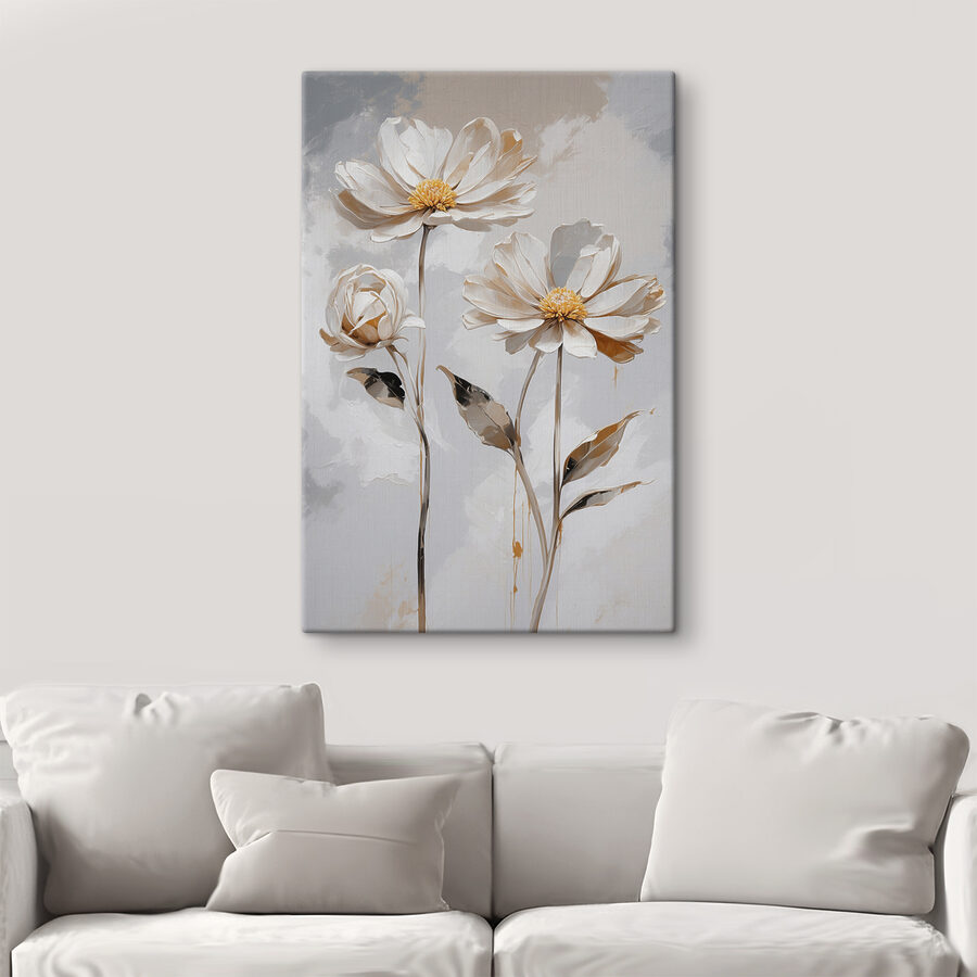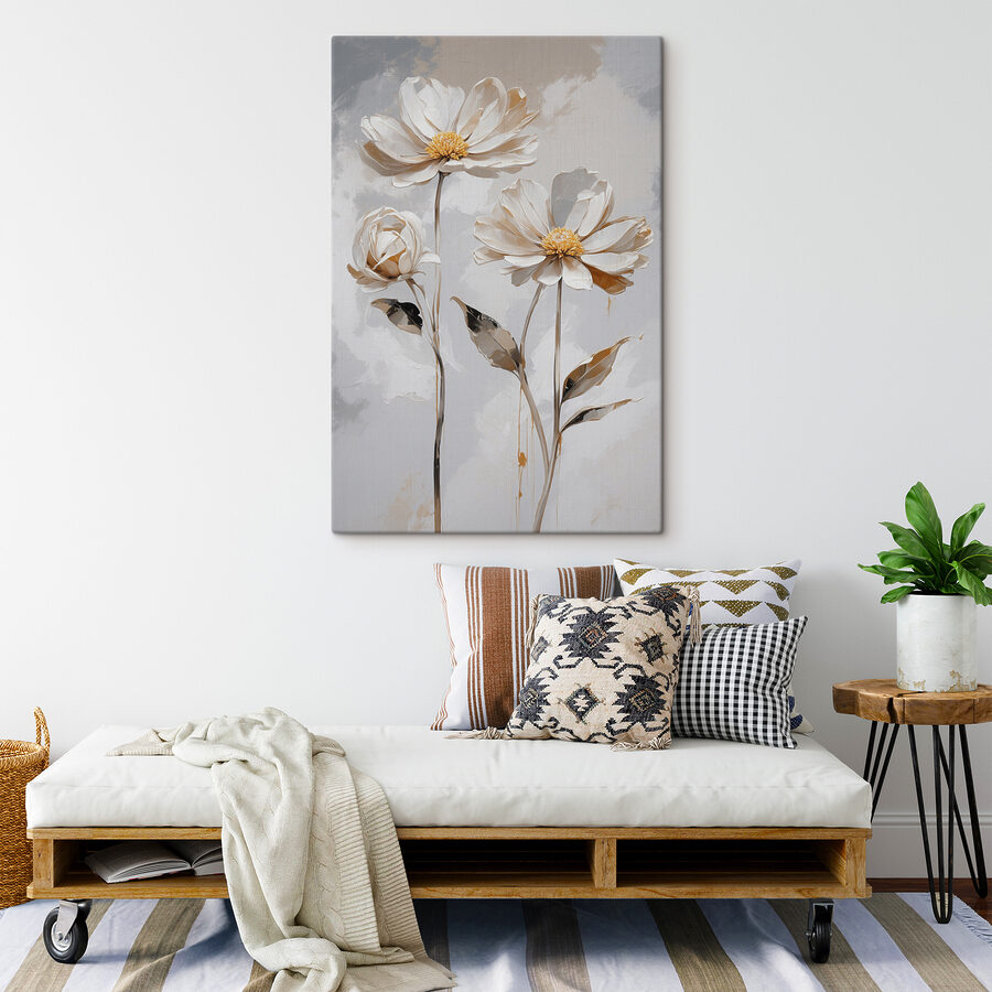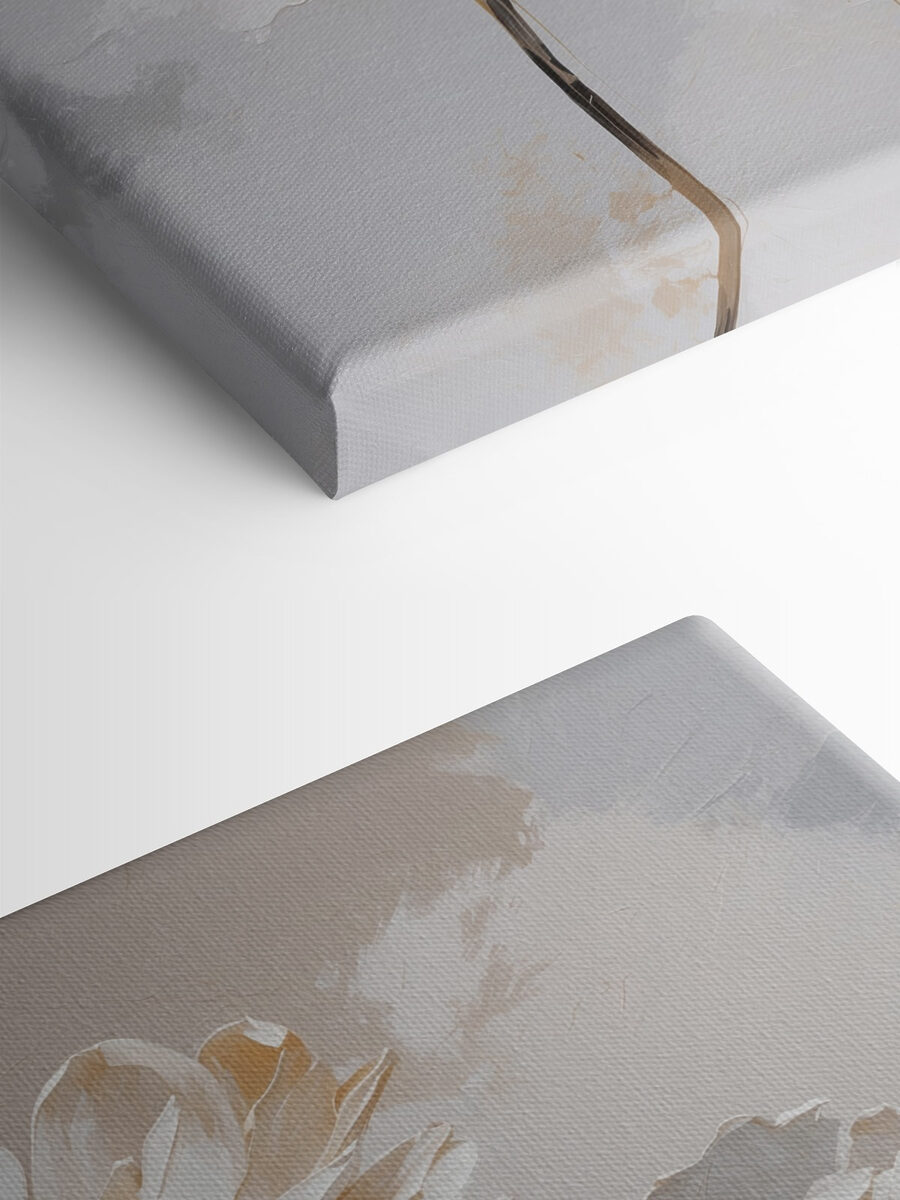 Ooit een ruimte binnengelopen en je gewoon… rustig gevoeld? Alsof je wat makkelijker kon ademen? Dat is wat deze canvasprint doet. Hij brengt een zachte, vredige sfeer die precies goed is. De delicate, bijna dromerige bloemen lijken te zweven op het canvas, alsof ze kleine geheimen van de natuur fluisteren. Perfect voor die plekken waar je binnen een vleugje van het buitenleven nodig hebt. Of het nu boven een comfortabele bank hangt of je begroet in de gang, dit stuk voegt een vleugje elegantie toe zonder stoffig aan te voelen. En wie houdt er niet van die perfecte mix van neutrale tinten die bij vrijwel alles passen? Het is als een knuffel voor je muren 🌸