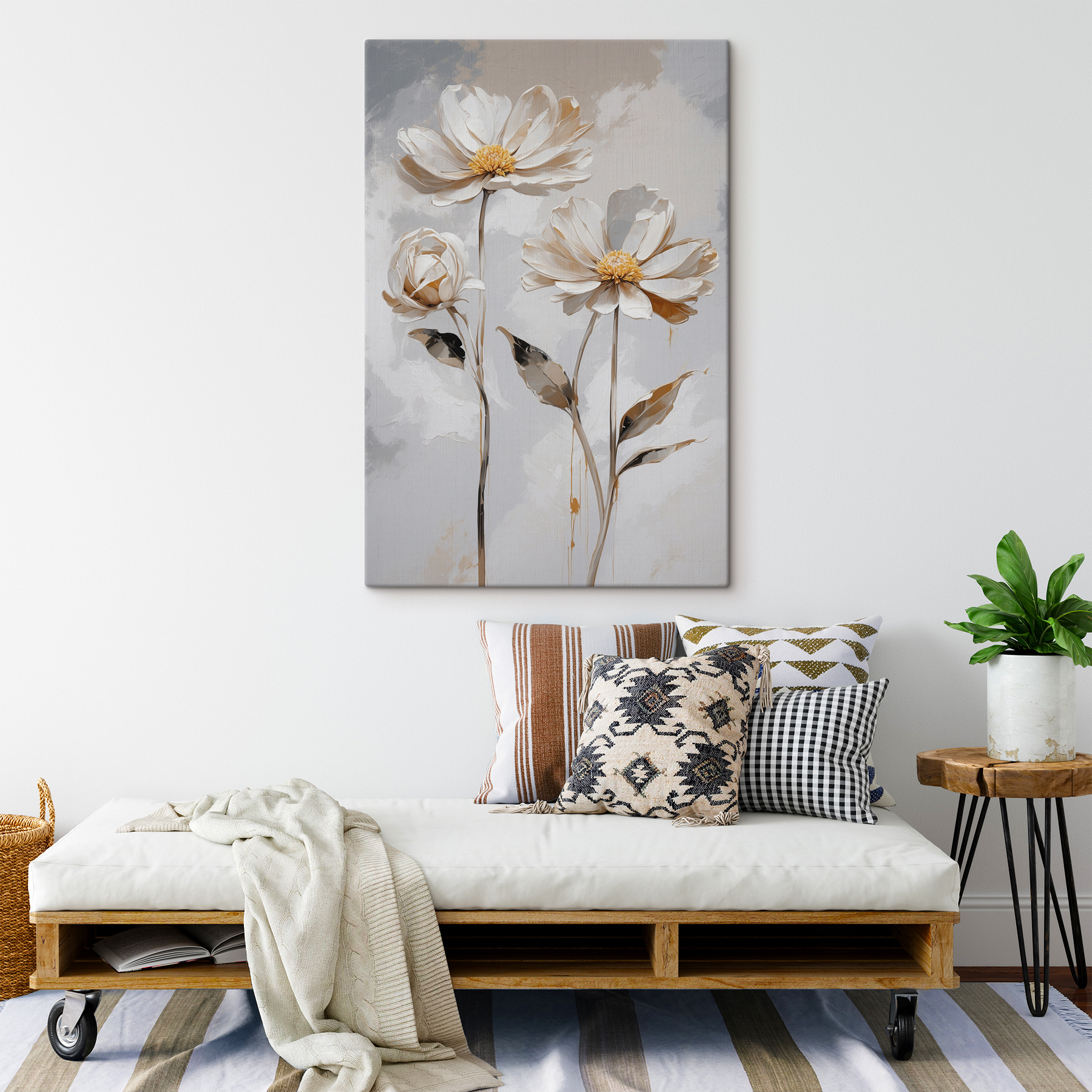 Ooit een ruimte binnengelopen en je gewoon… rustig gevoeld? Alsof je wat makkelijker kon ademen? Dat is wat deze canvasprint doet. Hij brengt een zachte, vredige sfeer die precies goed is. De delicate, bijna dromerige bloemen lijken te zweven op het canvas, alsof ze kleine geheimen van de natuur fluisteren. Perfect voor die plekken waar je binnen een vleugje van het buitenleven nodig hebt. Of het nu boven een comfortabele bank hangt of je begroet in de gang, dit stuk voegt een vleugje elegantie toe zonder stoffig aan te voelen. En wie houdt er niet van die perfecte mix van neutrale tinten die bij vrijwel alles passen? Het is als een knuffel voor je muren 🌸