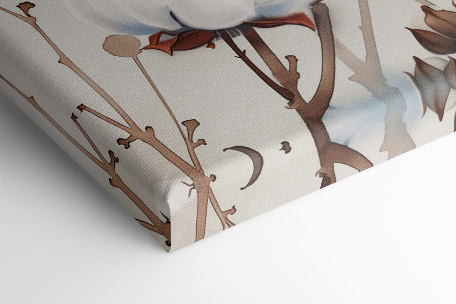 Bekijk de Canvas Schilderijen s39215-een zachte plons aquarelkunst die een frisse wind door je interieur laat waaien! Die zachte, pluizige witte bloemen, in contrast met de aardse bruintinten en subtiele groentinten, fluisteren bijna kalmte en warmte. Stel je voor dat dit in je woon- of slaapkamer hangt en een vleugje serene natuur toevoegt aan je dagelijkse leven. Het is net een wandeling door een vredige tuin, zonder er echt doorheen te lopen!
