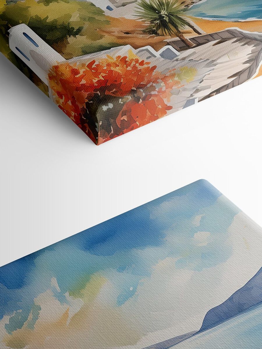 Tover elke muur om in een dromerig uitje met dit betoverende aquarelschilderij van een stadje op een klif. Stel je voor dat je een wereld binnenstapt waar levendige kleuren zich mengen met de rustige zeebries. Het is alsof je een glimp opvangt van een zonovergoten vakantie zonder je woonkamer te verlaten. Zeilboten glijden lui over het sprankelende water, terwijl charmante huizen je uitnodigen om door hun straten te dwalen. Dit doek is perfect om een knus hoekje op te fleuren of om een statement te maken in een grotere ruimte. Het is een heerlijke herinnering dat schoonheid echt net buiten onze deur bestaat.