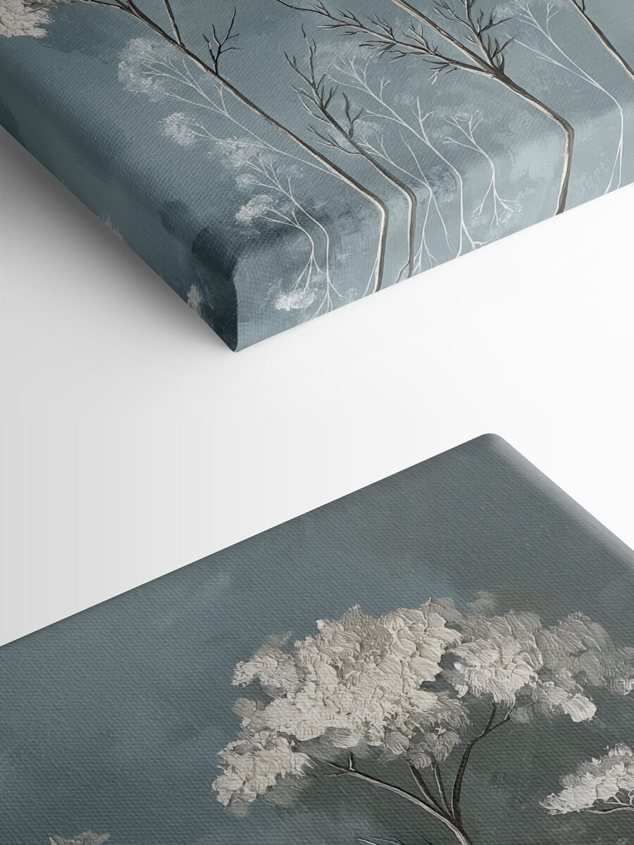Transformeer je kamer met deze fascinerende canvasprint van delicate witte bloemen tegen een rustgevende blauwe achtergrond. Stel je voor dat deze zachte bloemen je muur sieren en rust in je huis brengen. Ze zijn als een frisse wind, perfect om dat ene saaie hoekje op te fleuren of je woonkamer een vleugje natuurlijke charme te geven. Vrienden zullen het zeker opmerken en misschien zie je ze wel dagdromen terwijl ze verdwalen in de serene schoonheid. Het is meer dan alleen decor; het is als een klein stukje vrede dat daar hangt en elke dag uitnodigt tot glimlachen.