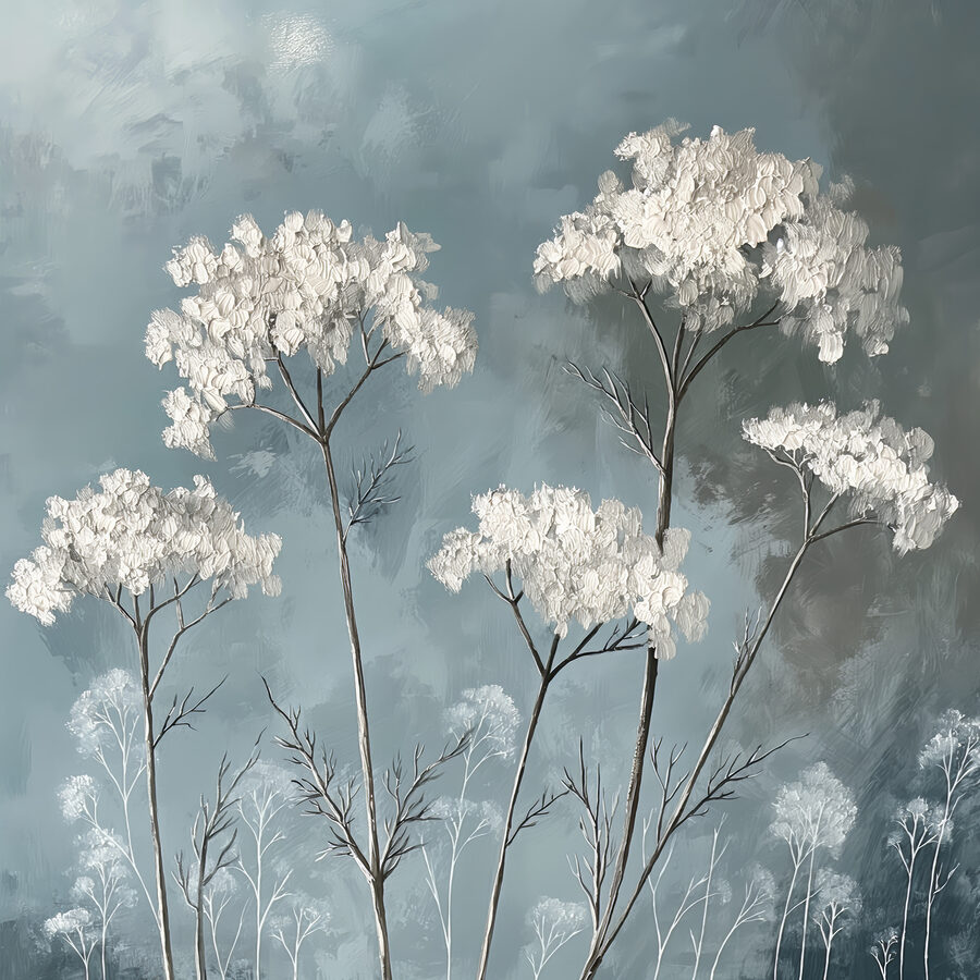 Transformeer je kamer met deze fascinerende canvasprint van delicate witte bloemen tegen een rustgevende blauwe achtergrond. Stel je voor dat deze zachte bloemen je muur sieren en rust in je huis brengen. Ze zijn als een frisse wind, perfect om dat ene saaie hoekje op te fleuren of je woonkamer een vleugje natuurlijke charme te geven. Vrienden zullen het zeker opmerken en misschien zie je ze wel dagdromen terwijl ze verdwalen in de serene schoonheid. Het is meer dan alleen decor; het is als een klein stukje vrede dat daar hangt en elke dag uitnodigt tot glimlachen.