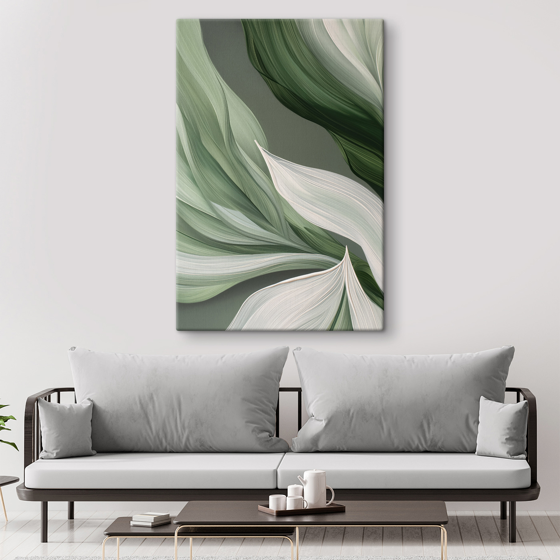 Ooit het gevoel gehad dat je muren wel een vleugje serene buitenlucht konden gebruiken? Maak kennis met “Afdrukken op canvas s39327. Het is alsof je een stukje van de rust van de natuur naar je woonkamer brengt. Die zachte golven van groen en wit? Absoluut gelukzalig! Stel je voor dat je lekker gaat liggen met een kopje thee en je ogen laat dwalen over die zachte, vloeiende rondingen – het is bijna meditatief.