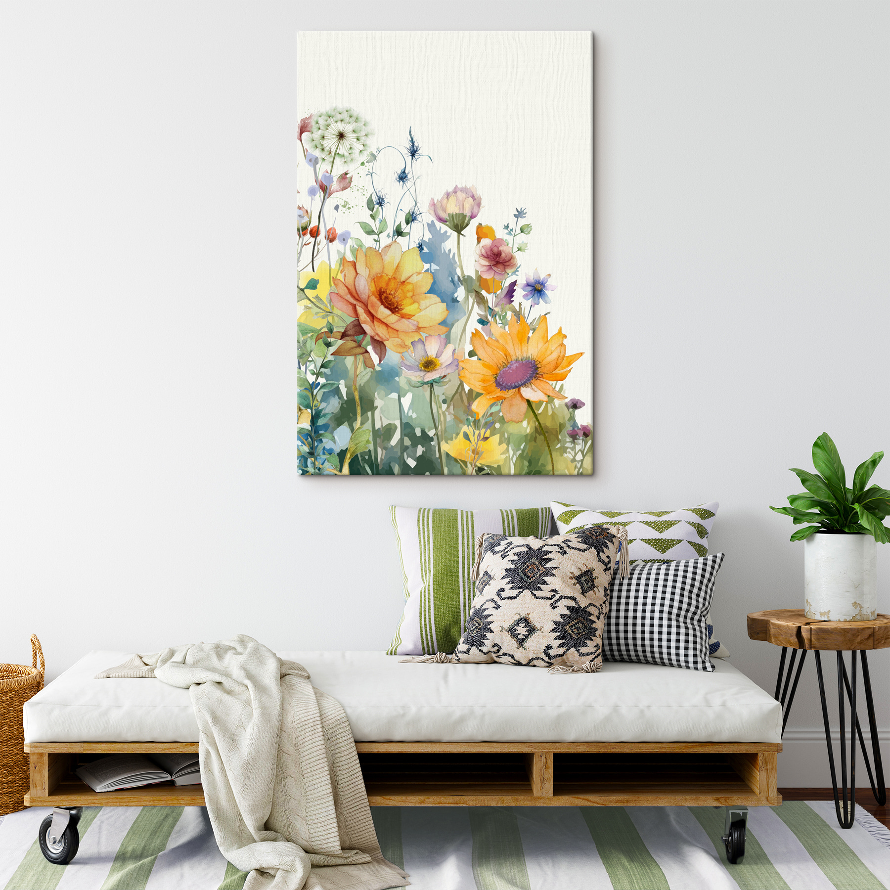 Bekijk “Canvas Schilderijen s39340” – een prachtige natuuruitbarsting voor aan je muur! Dit werk combineert de charme van beeldende kunst met de frisse schoonheid van aquarelbloemen. Stel je voor dat je door een zonovergoten veld wandelt, een zacht briesje dat paardebloemzaadjes de lucht in stuurt… dat gevoel, gewoon in je woonkamer. Stel je voor: levendige bloemblaadjes in zacht oranje, paars, geel… ze stralen bijna! Perfect om een vleugje sereniteit en vreugde toe te voegen. Of het nu de woonkamer, slaapkamer of zelfs een gezellig leeshoekje is, deze print brengt leven en kleur in elke ruimte. Het is alsof je het hele jaar door een vleugje lente in huis hebt!