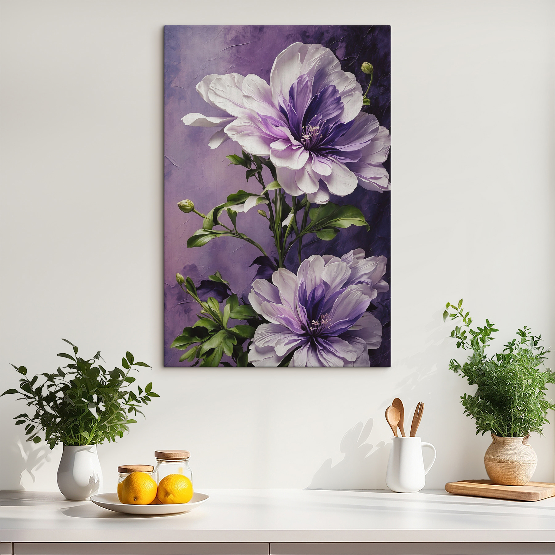 “Canvas Schilderijen s39368” – een prachtige mix van beeldende kunst, levendige bloemen en aquarelmagie. Stel je voor: je loopt je woonkamer binnen en daar is het… een explosie van delicate paars en weelderig groen – puur oogsnoep! Ik durf te wedden dat het je humeur direct verbetert – als een tuinfeest direct aan je muur. Elk bloemblaadje lijkt bijna aanraakbaar en nodigt uit tot bewondering en dagdromen. Of je nu aan je ochtendkoffie nipt of tot rust komt na een lange dag, dit stuk brengt een bloemenfantasie tot leven! Het is alsof Moeder Natuur zelf aan de slag is gegaan met een paar aquarelborstels. Perfect voor iedereen die een vleugje natuur wil toevoegen – zonder water te geven. Bereid je voor op een aantal belangrijke “Waar heb je dat vandaan?” momenten wanneer vrienden langskomen!