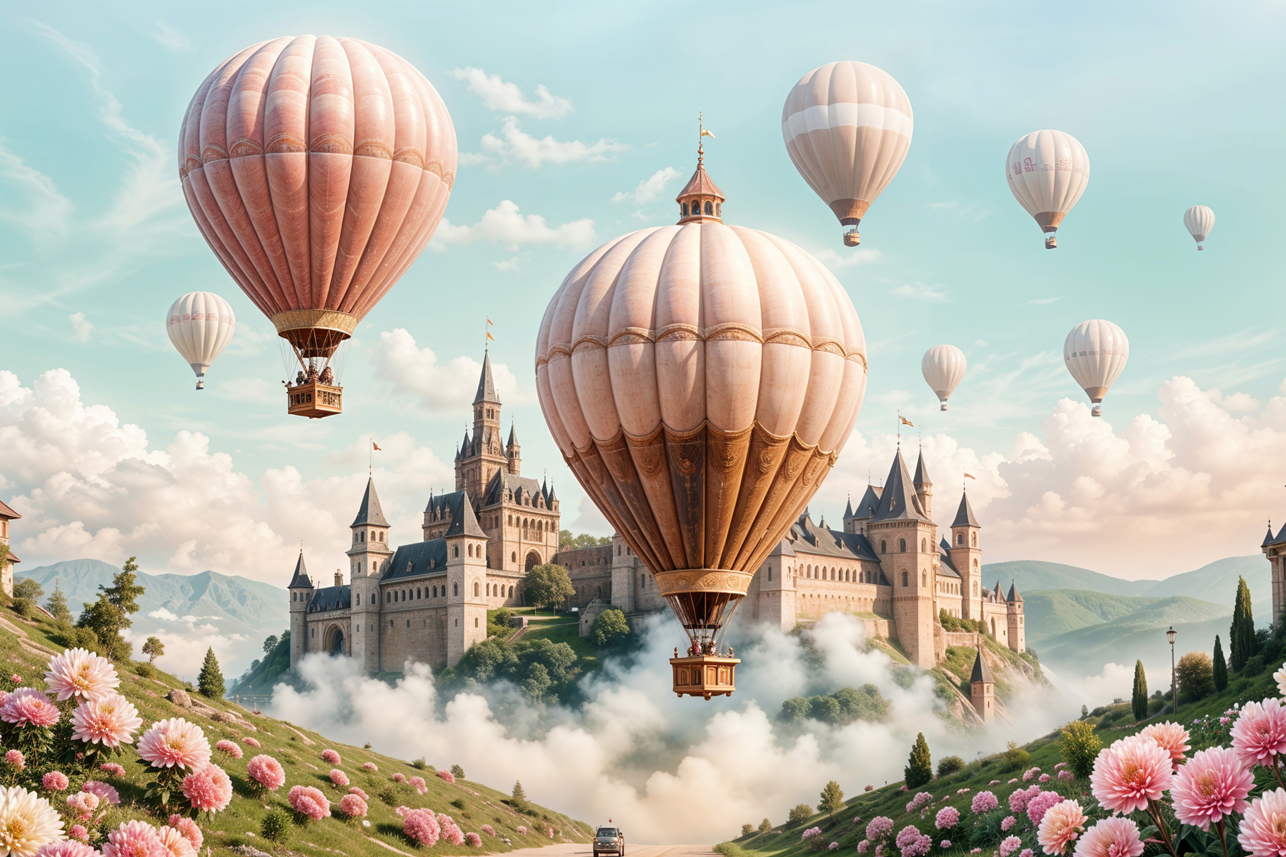 Ooit gedroomd om weg te zweven in een heteluchtballon, zwevend boven een sprookjeskasteel met roze bloemen en pluizige wolken als achtergrond? Deze “Canvas Schilderijen s39387” geeft die fantasie perfect weer! Het is grillig, charmant en o zo betoverend – het voelt bijna alsof het rechtstreeks uit een magisch verhalenboek komt. Hang deze prachtige print aan je muur en voeg een vleugje dromerige ontsnapping toe aan je interieur. Of het nu de woonkamer, slaapkamer of zelfs een gezellig leeshoekje is, dit stuk zal zeker vreugde opwekken en misschien ook een beetje reislust. Stel je voor dat gasten de kamer binnenstappen en even de tijd nemen om alles in zich op te nemen – verwacht een aantal serieuze “oooohs” en “aaaahs”. De zachte kleuren, het serene landschap, de delicate bloemen… het is als een zachte zucht van schoonheid elke keer als je ernaar kijkt. Dit is het soort kunst dat er niet zomaar staat, maar je elke dag meeneemt op een klein avontuur.