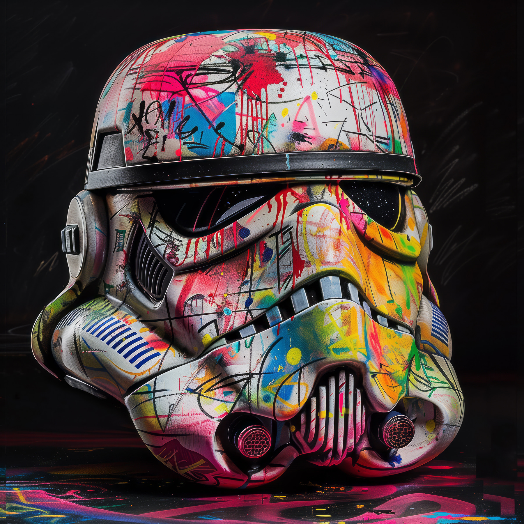 Duik in een wereld waar popcultuur en speelse kunst elkaar ontmoeten met de “Canvas Schilderijen Colorful Storm Trooper Helmet. Dit opvallende stuk is niet zomaar kunst aan de muur; het is een conversatiestarter. Stel je voor dat je een kamer binnenloopt en begroet wordt door deze levendige helm, bespat met wilde kleuren en onmiskenbare flair. Hij brengt een frisse, funky sfeer die de ernst van het volwassen leven kan wegnemen. Stel je een gezellige spelletjesavond voor of een ongedwongen samenzijn. Dit canvas voegt de perfecte speelse touch toe. Het is alsof je een stukje melkwegstelsel hebt dat een verhaal vertelt, wachtend tot jij het ontdekt.