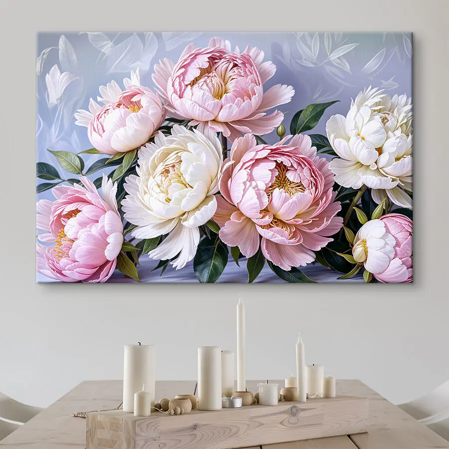 Ooit de essentie van de lente op je muren willen vastleggen? Dan is deze “Canvas Schilderijen s39514” misschien precies wat je zoekt. Stel je voor dat je je kamer binnenloopt en begroet wordt door een boeket weelderige, pioenachtige bloemen in zacht roze en wit, die je meteen naar een bloeiende tuin brengen. De mix van bloemen en natuur brengt een soort rust… bijna als een zachte zucht na een lange dag. Perfect voor iedereen die het eenvoudige plezier en de schoonheid van de natuur waardeert. Zet dit in je woon- of slaapkamer en voel de ruimte tot leven komen met deze levendige, bijna levensechte bloemen. Het is meer dan een decor – het is een stukje sereniteit!
