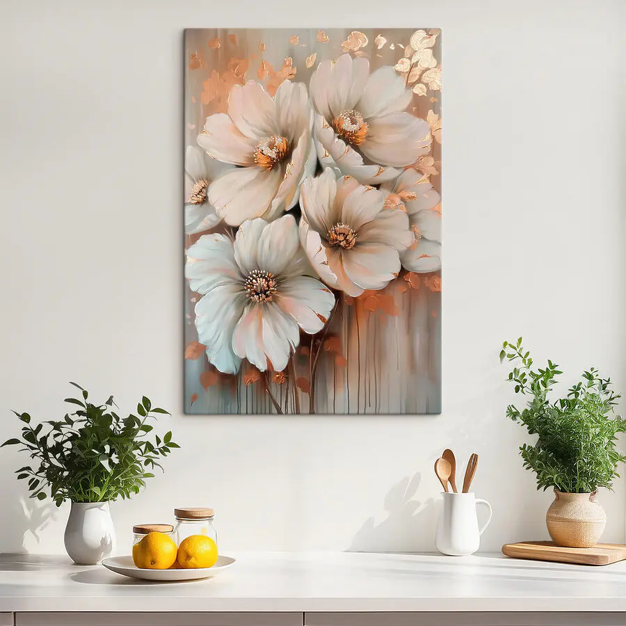 Fleur elke ruimte op met Canvas Schilderijen Elegant Blossoms in Shimmering Hues. Dit kunstwerk barst van de zachte bloemen en geeft een gevoel van warmte en comfort dat moeilijk te weerstaan is. Stel je voor dat je een kamer binnenloopt en deze verrukkelijke bloemen begroeten je als een oude vriend – perfect om de stemming te verhogen! Het is als een frisse wind die leven brengt in saaie muren. Combineer het met gezellige kleedjes of een lekker kopje thee en je hebt een winnaar. Of het nu een woonkamer is of een rustig leeshoekje, dit stuk creëert een serene sfeer. Voel je de rust niet?