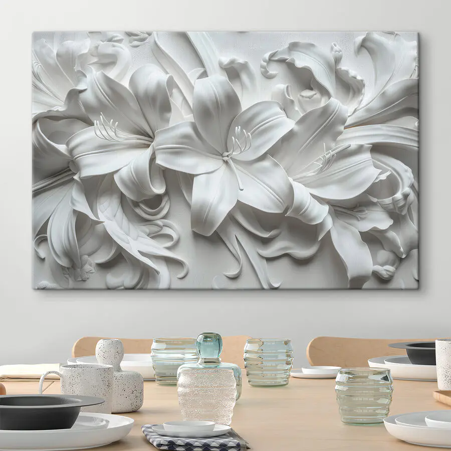 Transformeer elke ruimte met deze prachtige canvasprint met een delicate witte bloem op een wit oppervlak. Het is een mooie mix van eenvoud en elegantie die iedereen even stil doet staan en wat dieper laat ademen. Stel je voor dat dit stuk in een gezellig hoekje hangt, misschien zelfs naast een dampende kop koffie. De manier waarop het licht speelt met de subtiele nuances kan de sfeer in een kamer direct oppeppen. Dit kunstwerk is perfect voor mensen die van ingetogen schoonheid houden en fluistert verfijning terwijl het uitnodigt tot warme, kalmerende sferen. Het is als een zachte knuffel voor je muren.