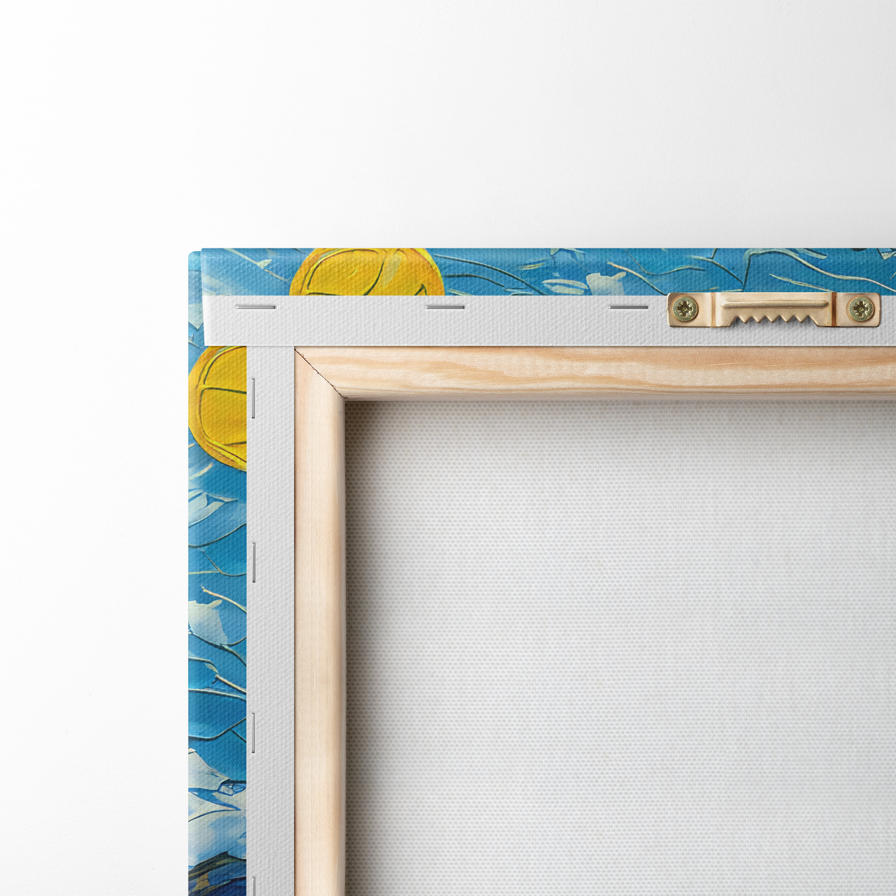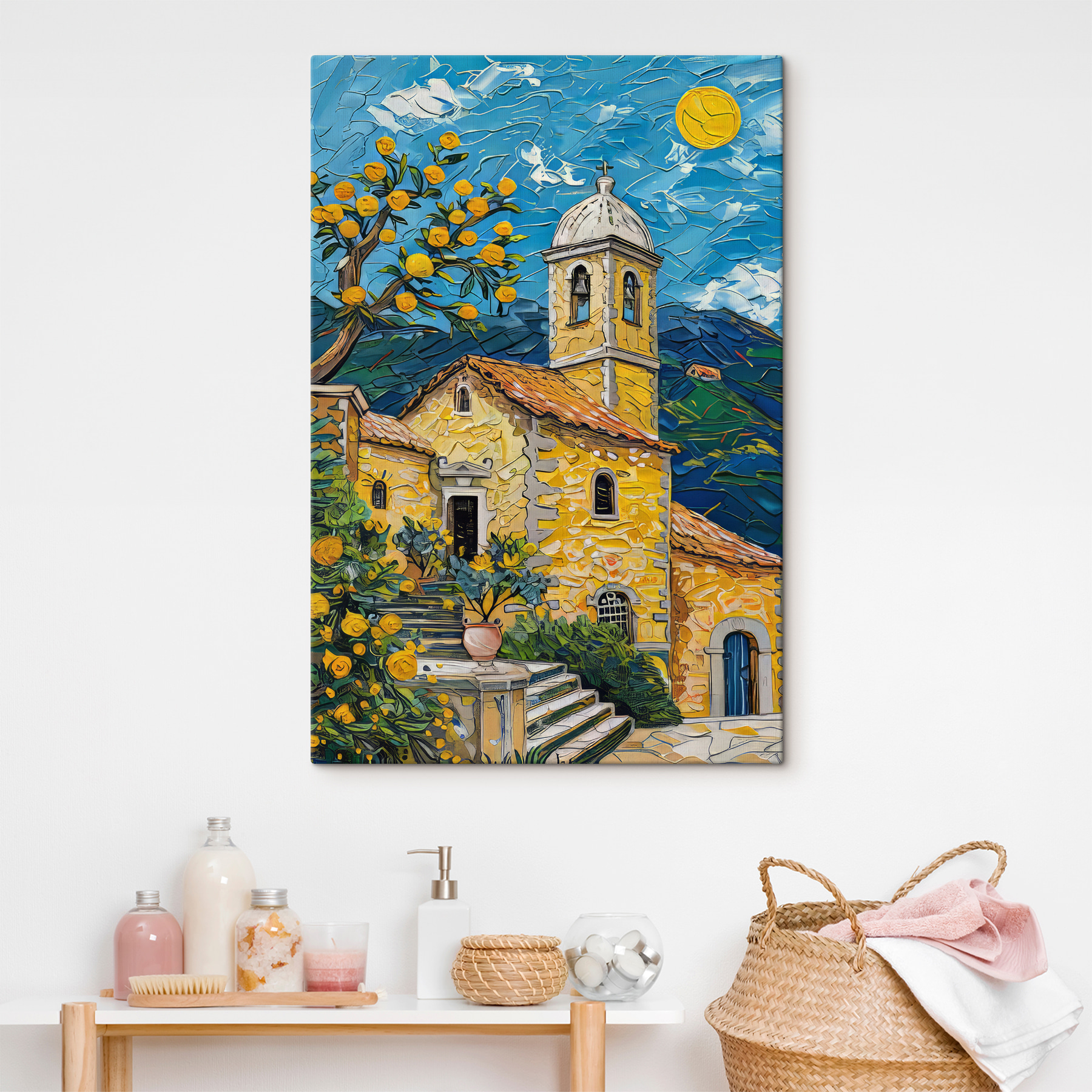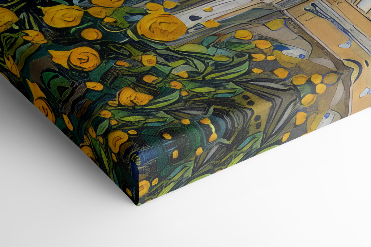 Stap in een wereld waar kleuren dansen en charme en gezelligheid elkaar ontmoeten. Deze canvasprint toont een prachtig gebouw met een klokkentoren, genesteld tussen levendige gele bloemen en een stralend blauwe lucht. Stel je voor dat je koffie drinkt en de warmte van het zonlicht op je gezicht voelt terwijl je naar dit kunstwerk kijkt – het is net een uitje zonder je huis te verlaten. De speelse kleuren en levendige details kunnen dagdromen over zonovergoten vakanties. Dit kunstwerk is perfect om een woonkamer of een zonnig hoekje op te fleuren en geeft elke ruimte een hartverwarmend tintje. Wie zou niet willen verdwalen in dit kleine stukje geluk?