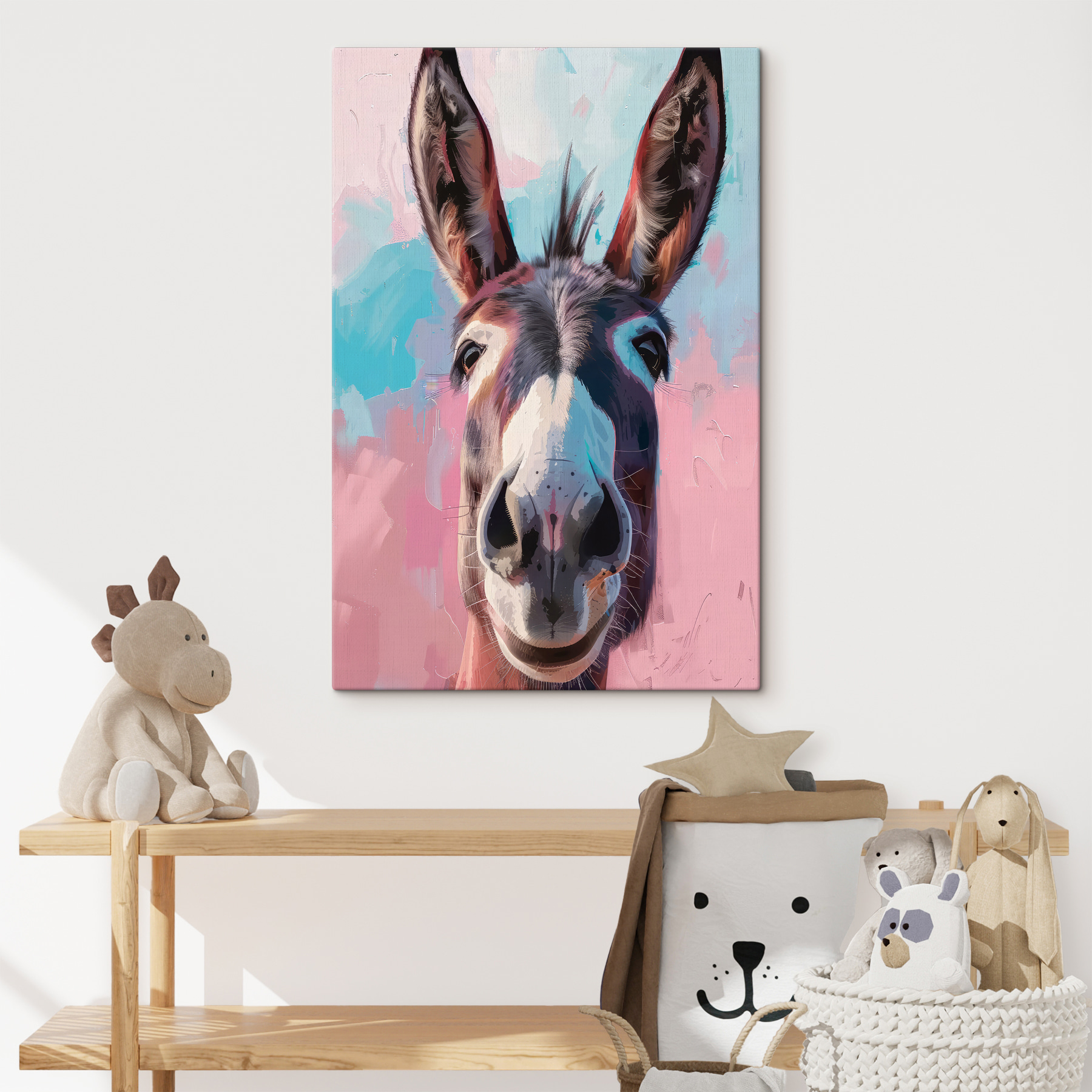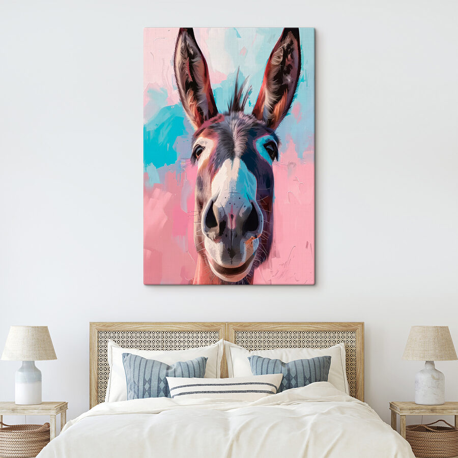 Fleur je muren op met dit opvallende ezelportret. Stel je een vrolijke ziel voor die naar je gluurt, omlijst door levendige kleuren die zowel levendig als rustgevend aanvoelen. De speelse mix van tinten voegt moeiteloos karakter toe aan elke kamer en zorgt voor vreugde en gespreksstof. Stel je deze charmeur voor in een knus hoekje of als een eigenzinnig middelpunt in je woonkamer; het zou zelfs een glimlach op je gezicht kunnen toveren tijdens die lange vergaderingen! Perfect voor dierenliefhebbers en iedereen die op zoek is naar een vleugje persoonlijkheid. Dit canvas heeft alles te maken met plezier en warmte, waardoor het een heerlijke aanvulling is op het dagelijks leven.