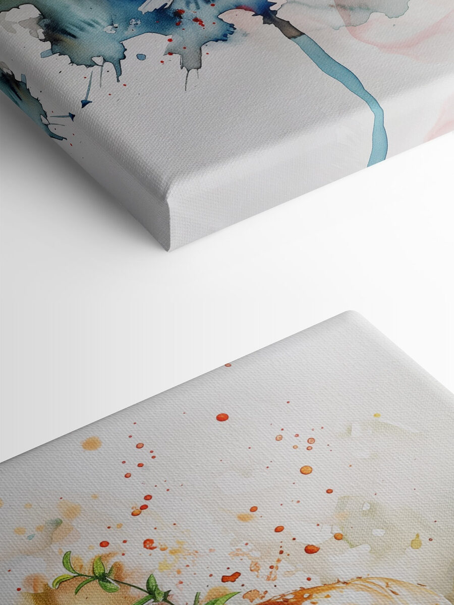 Het is perfect voor iedereen die de kunst van lekker eten (pun intended!) waardeert en houdt van een beetje speels decor. Of je nu een culinaire tovenaar bent of iemand die het gewoon leuk vindt om eten als kunst voor te stellen, dit canvas past er helemaal bij. Bovendien zit het in categorieën als Fine Art, Food and Drinks en Watercolor Art – dus het is net alsof het een doctoraat heeft in er goed uitzien. Hang dit op in je keuken of eethoek en kijk hoe het de ruimte verlicht – wie wist dat eten zo inspirerend kon zijn? Geniet van de heerlijke vibraties!