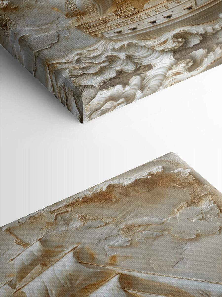 Zet je zinnen op avontuur met deze prachtige canvasprint van een majestueus schip met wapperende zeilen alsof ze de wind van een groots verhaal vangen. Het is alsof een stukje van de zee is gevangen en in je kamer is gebracht. Stel je het voor boven je bank, uitnodigend om gezellig te kletsen over reizen en te dromen van verre oorden. De golven dansen onder het schip, waardoor het levendig aanvoelt alsof het zo uit het beeld zou kunnen varen. Perfect voor wie houdt van de oceaan, de schoonheid van de natuur en een beetje reislust aan de muur. Een kamer omtoveren met dit kunstwerk is net zo makkelijk als het gevoel hebben dat je een zeeman bent die klaar is voor de volgende horizon!