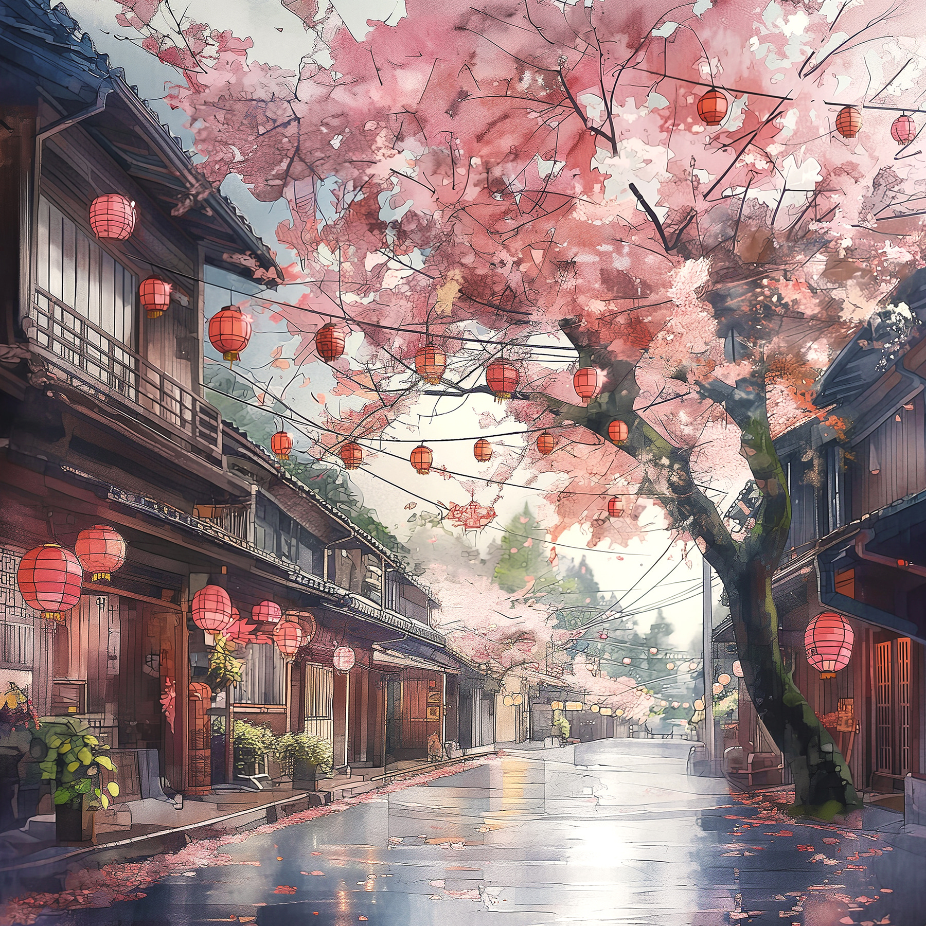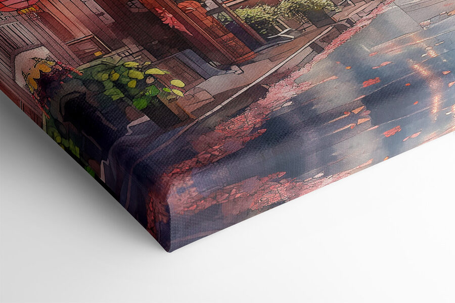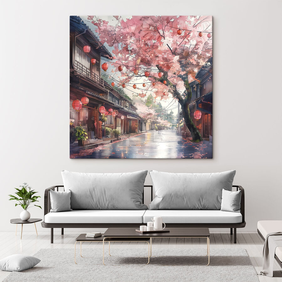 Stel je voor dat je thuis tot rust komt met een dampende kop thee, starend naar deze serene canvasprint-“Canvas Schilderijen s39774. Het is alsof je een vredige Japanse straat binnenstapt, gewoon in je eigen kamer! Die kersenbloesems in volle bloei, met tere bloemblaadjes die zachtjes wiegen met de bries… je kunt het zachte geritsel bijna horen. En de lantaarns – zijn die niet de kers op de taart? Ze zorgen voor zo’n warme gloed dat je de rust bijna voelt.