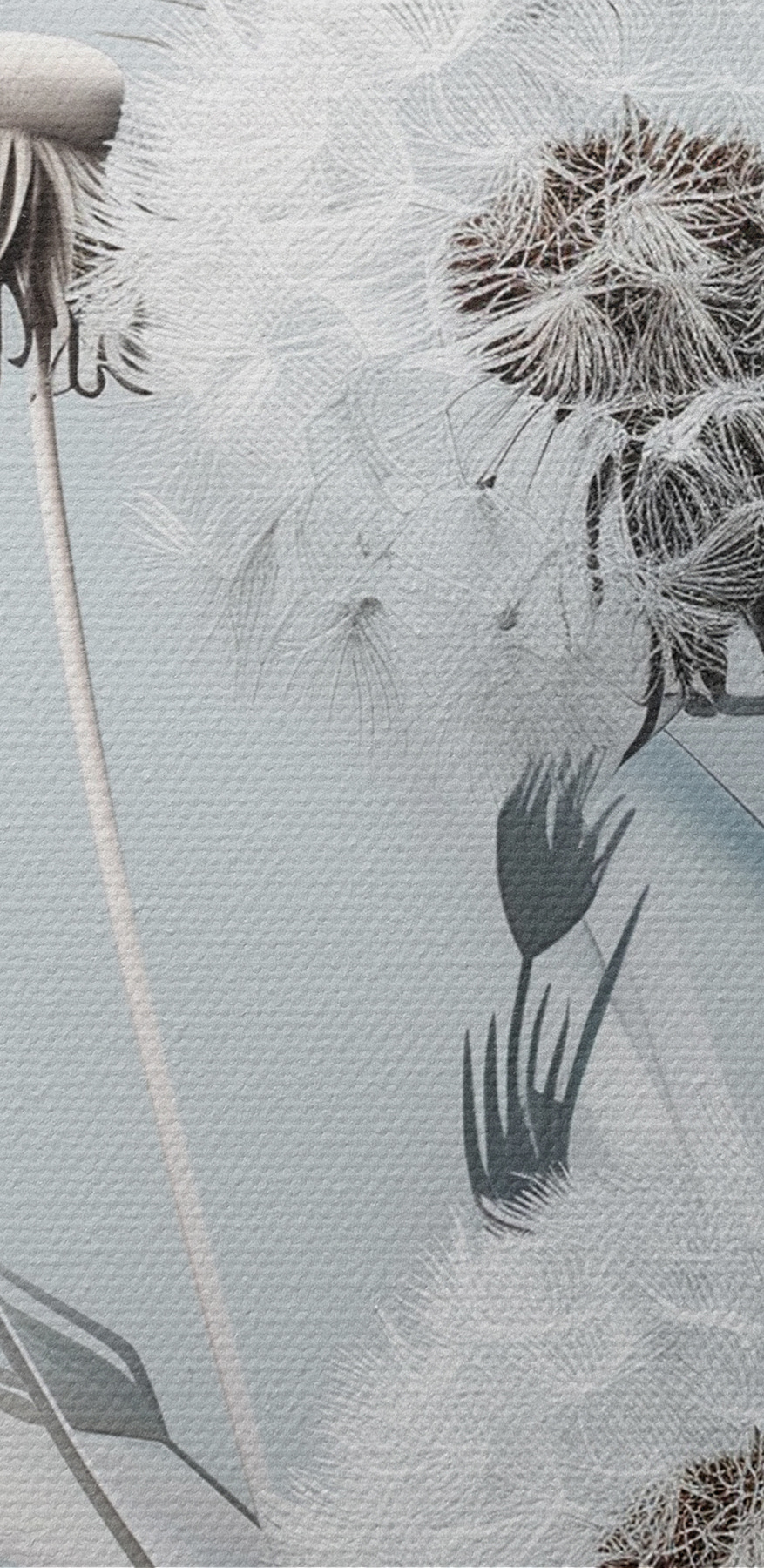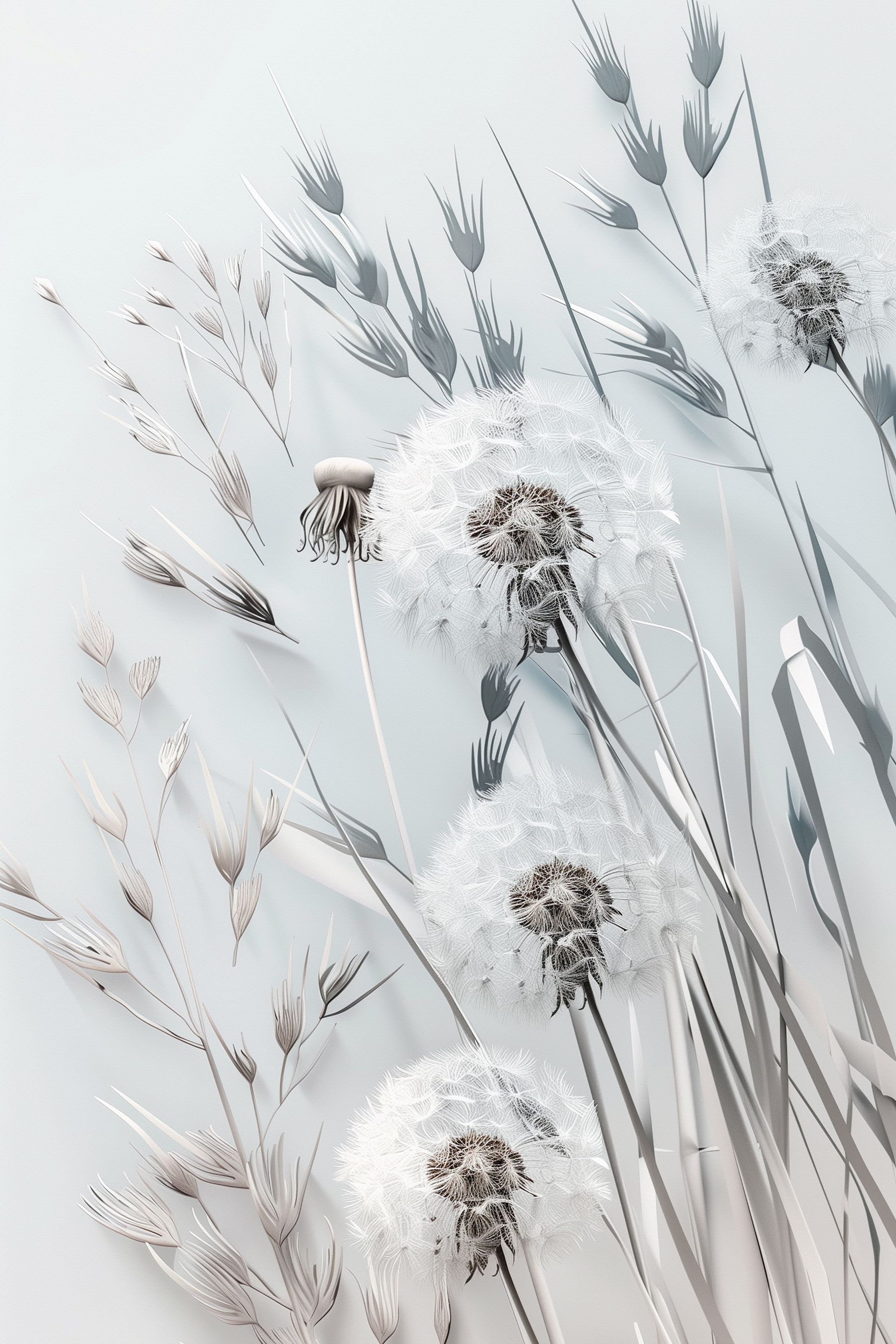 Het is minimalistisch en toch rijk, rustig en toch fascinerend. Bezoekers kunnen het gevoel krijgen dat ze naar een vredig veld zijn getransporteerd – misschien roept het nostalgische herinneringen op aan kinderjaren waarin ze wensen deden met paardenbloemenpluisjes. Het is niet zomaar kunst; het is een stukje sereniteit. Perfect om een gewone muur om te toveren in een poëtische ontsnapping… en eerlijk gezegd, wie wil dat nu niet?