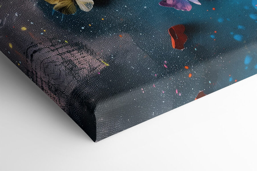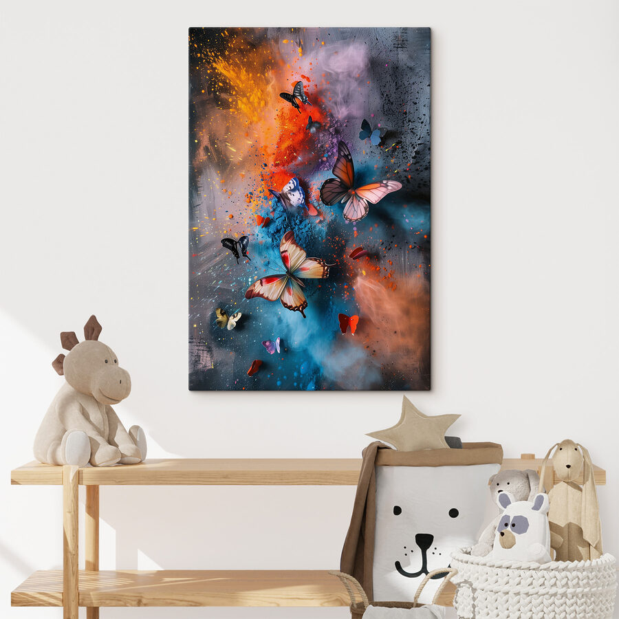 Dit canvas blijft niet gewoon aan de muur hangen, het danst! De vlinders lijken bijna klaar om je kamer in te fladderen. Je zou jezelf wel eens kunnen betrappen op dagdromen, helemaal opgaand in de mix van rijke kleuren en abstracte patronen. Perfect voor iedereen die graag een vleugje buitengewoon toevoegt aan zijn of haar alledaagse ruimte.