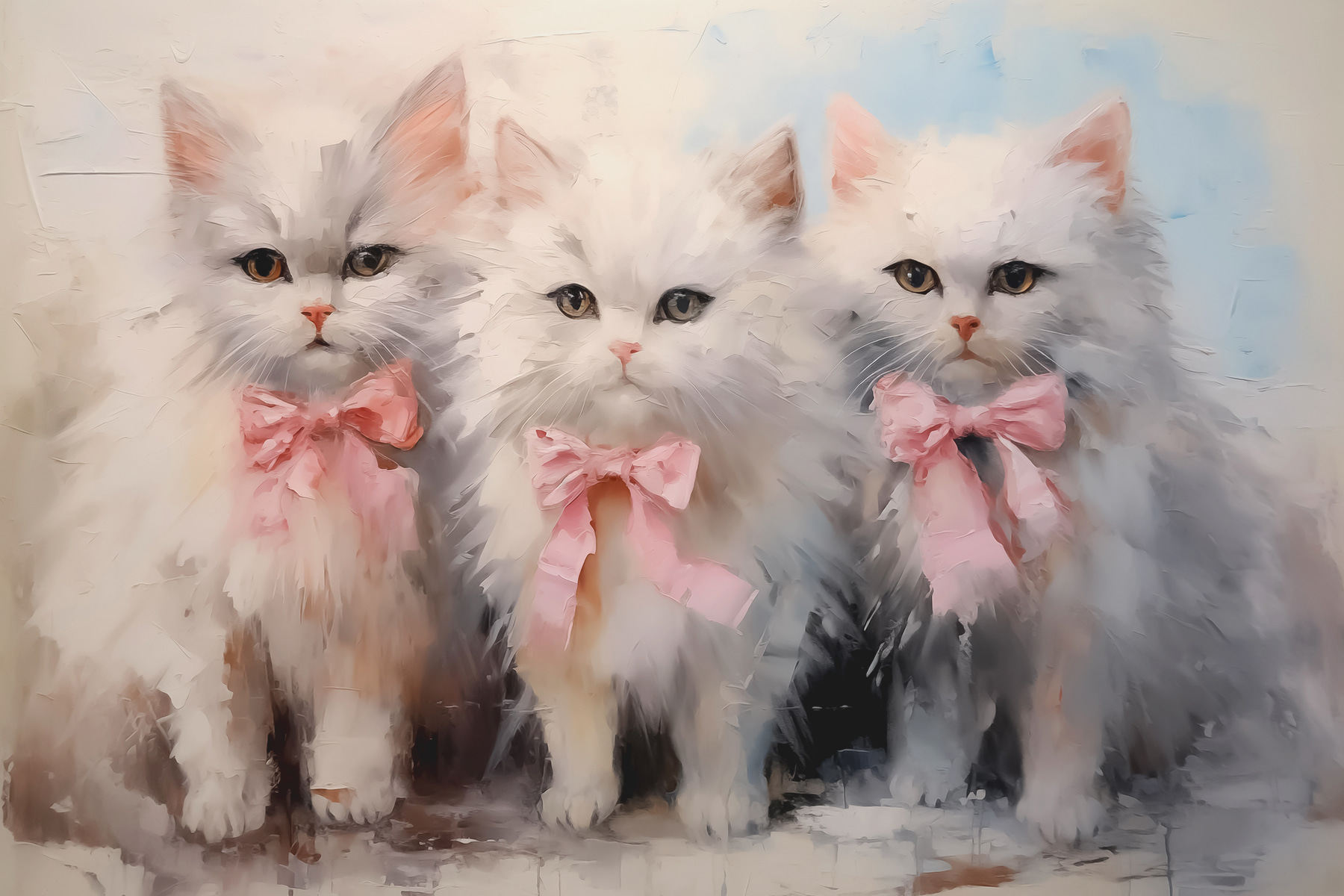 Stel je eens voor – drie schattige, pluizige kittens, helemaal uitgedost in charmante roze strikjes, die je recht in de ogen kijken. Dat is wat je krijgt met “Canvas Schilderijen s39826”! Dit schattige kattentrio is perfect voor dierenliefhebbers en voegt een vleugje eigenzinnigheid en elegantie toe aan elke muur. Je kunt ze bijna horen spinnen. Vrienden komen binnen en kunnen niet anders dan glimlachen… eerlijk, het is alsof ze je uitdagen om niet van ze te houden.