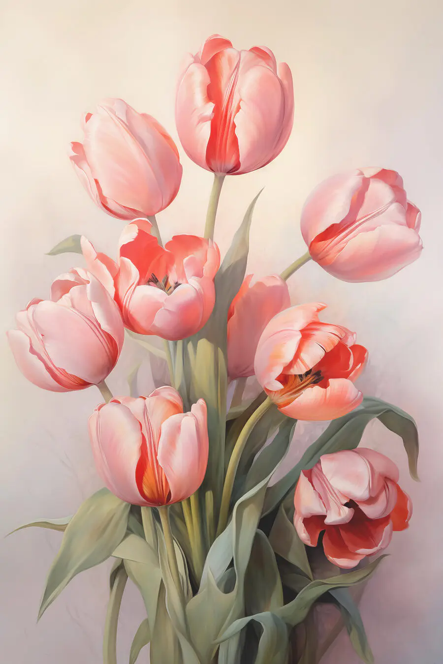 Is deze tulp op canvas niet dromerig? Stel je voor dat hij in je kamer hangt – helder, vrolijk en o zo uitnodigend! Deze zachtroze en koraalkleurige tulpen barsten van het leven en wiegen lui in een zacht briesje. Alsof je het hele jaar door je eigen hoekje van een lentetuin aan je muur hebt hangen.