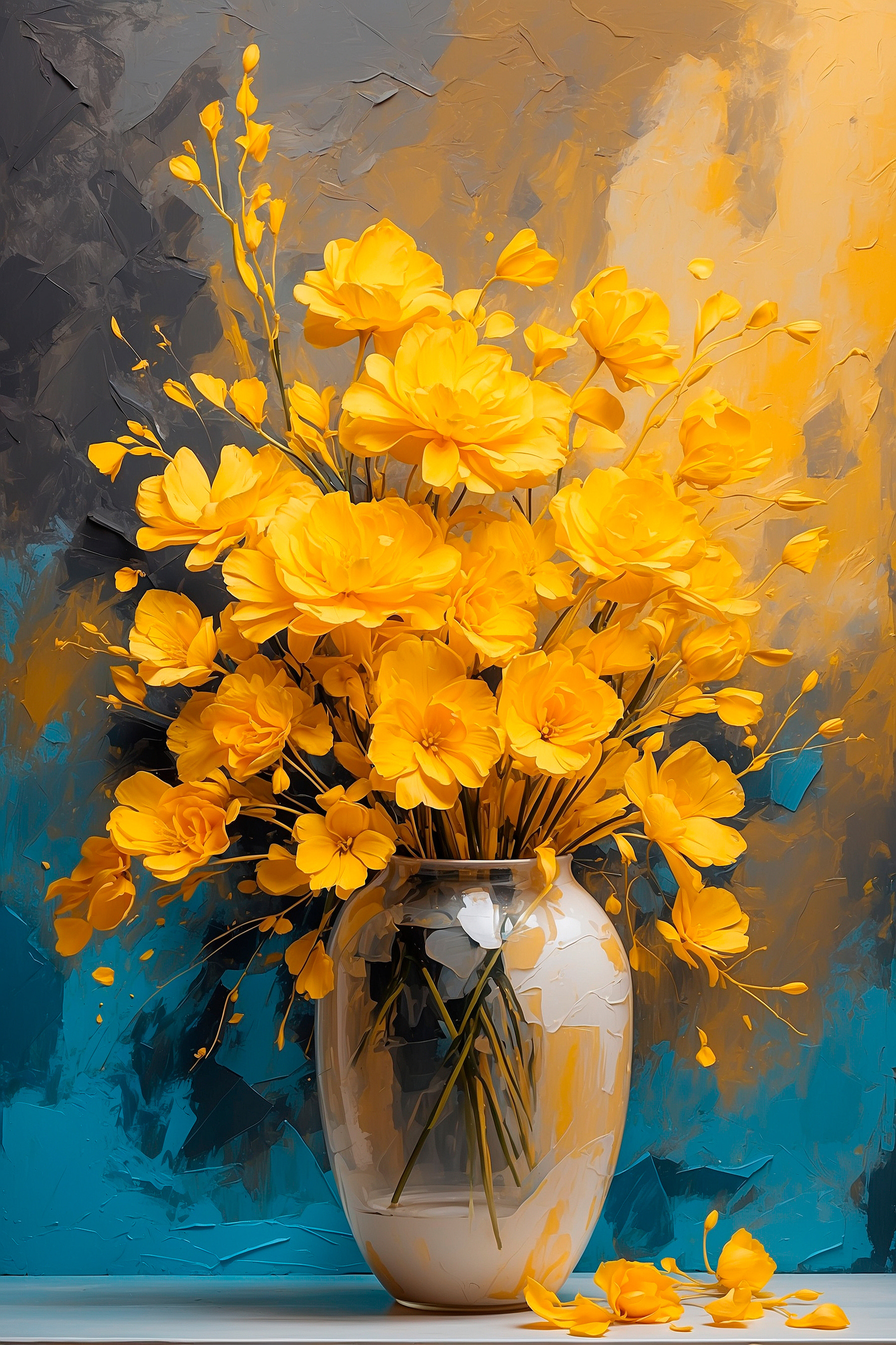 Fleur elke kamer op met deze prachtige canvasprint, “Vaas met gele bloemen”. Het is als een uitbarsting van zonneschijn op je muur, die een warme, vrolijke sfeer brengt zonder dat je water hoeft te geven. Stel je voor dat je een ruimte binnenloopt en je meteen opgebeurd voelt door die levendige bloemblaadjes, alsof je even ontsnapt naar een zonnige tuin. Perfect voor elke kamer die een beetje kleur of een gezellig tintje nodig heeft. Vrienden zullen je waarschijnlijk vragen waar je het gevonden hebt en jij kunt glimlachen, wetende dat het het geheime ingrediënt is voor je stijlvolle inrichting. Mix het met je favoriete stukken en zie hoe het de show steelt!