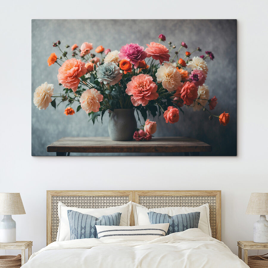 Oh, kijk eens naar deze prachtige canvasprint! Het is net een tuinfeest in je woonkamer. Met de naam “Canvas Schilderijen s39859” behoort dit stuk tot de categorieën “Bloemen Canvas Kunst, Natuur Canvas Kunst, Populaire Canvas Kunst”. Stel je eens voor hoeveel kleur en leven het in je kamer zal brengen – ik bedoel, kijk eens naar die dromerige bloemen! De zachte pasteltinten met dat rustieke tafelgevoel… het is alsof de bloemen rust en vreugde in je dag fluisteren.