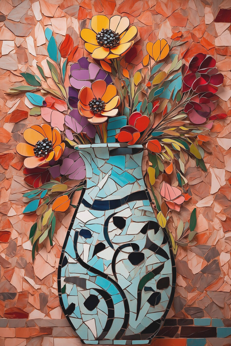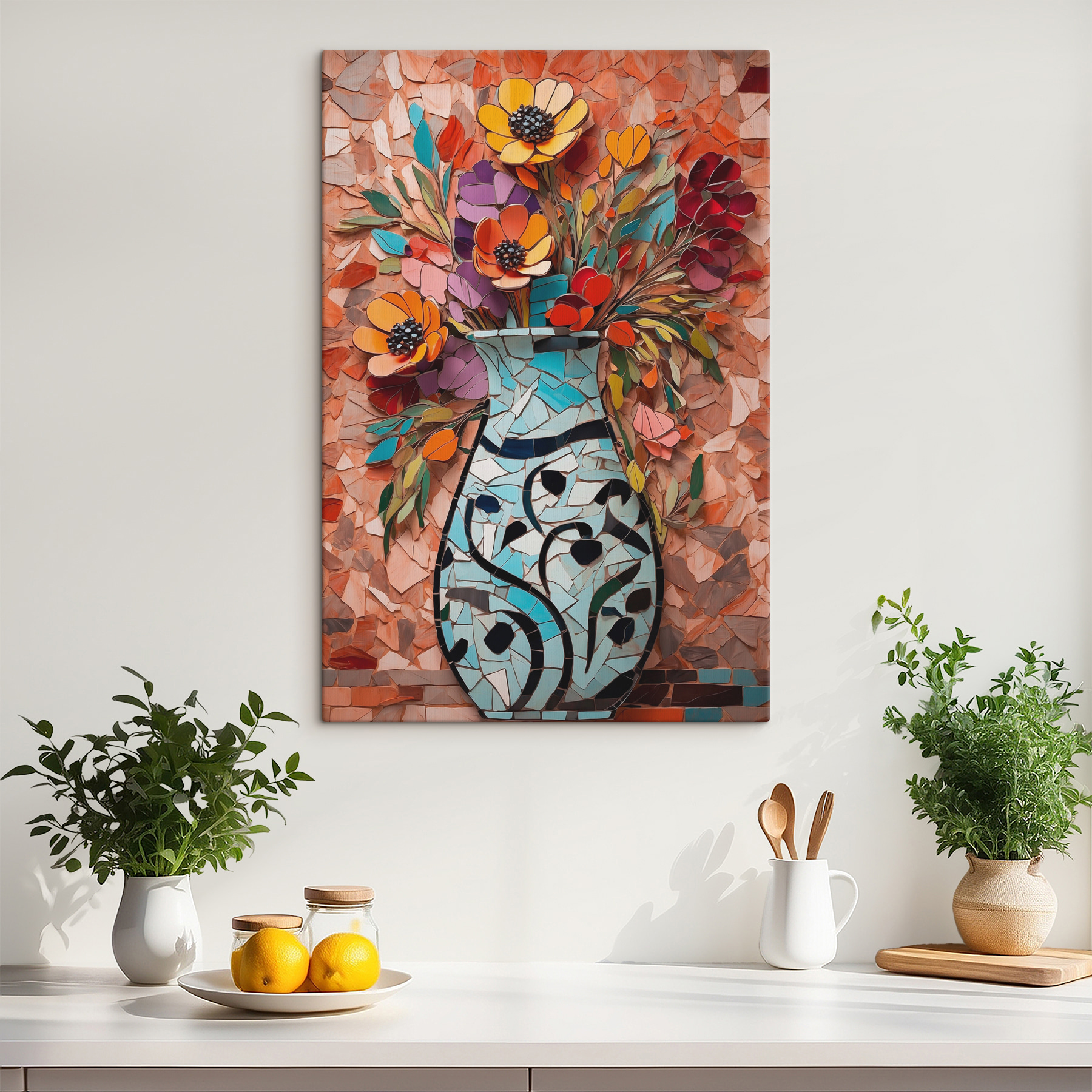 Stel je voor: je woonruimte versierd met deze prachtige canvasprint, “Canvas Schilderijen s39867.” Het is alsof je een levendig boeket aan je muur hebt hangen dat nooit verwelkt! De bloemen in mozaïekstijl barsten van de kleur – rood, paars en geel – en zijn genesteld in deze vaas met grillig patroon. Perfect voor iedereen die houdt van een beetje natuur binnenshuis.
