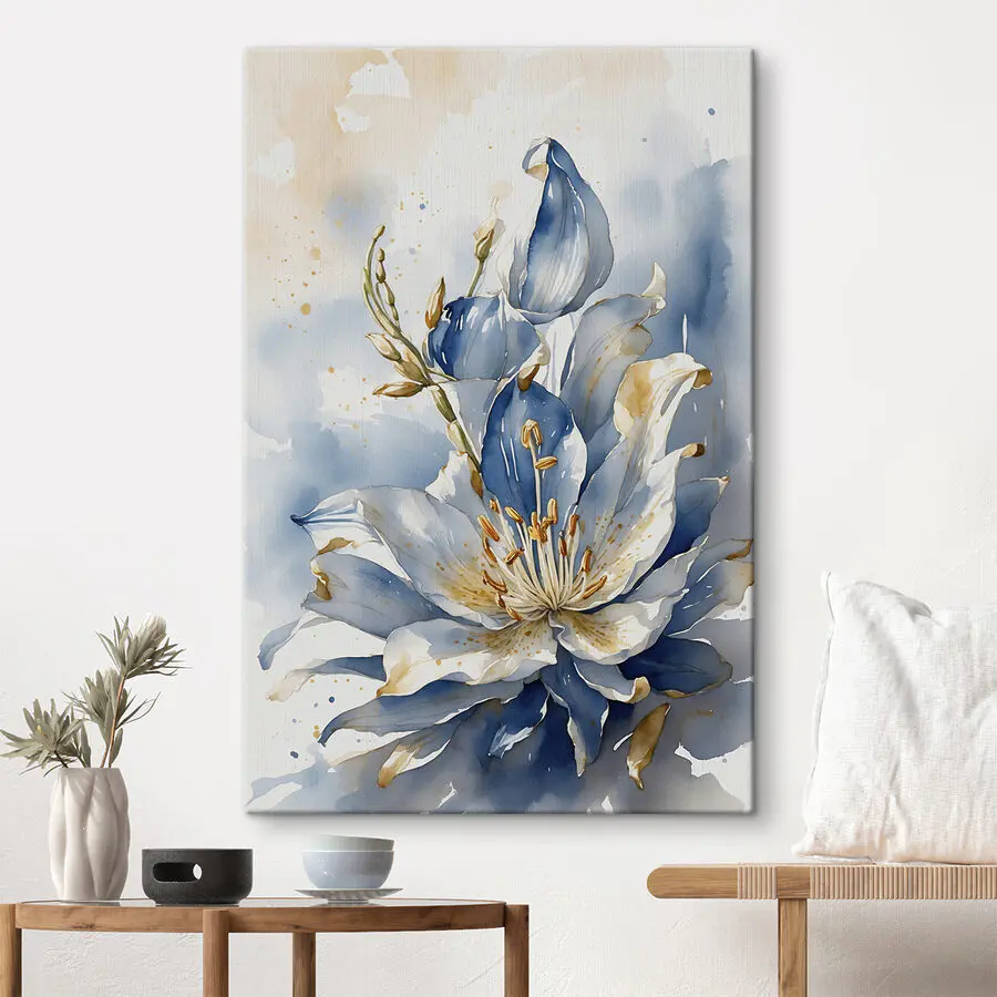 Fleur elke ruimte op met deze prachtige canvasprint van aquarelbloemen. Stel je voor dat je een kamer binnenloopt en begroet wordt door zachte bloemblaadjes in zacht blauw en wit, een instant sfeermaker! Het is alsof je een stukje lente aan je muur hebt hangen, zonder dat je water hoeft te geven. De delicate details trekken je naar binnen, waardoor het bijna levend aanvoelt en geheimen over de natuur fluistert. Perfect voor die knusse hoekjes of als conversatiestarter op je volgende bijeenkomst. Het brengt een vleugje eigenzinnigheid en herinnert iedereen aan de schoonheid die ons omringt. Wees niet verbaasd als het de ster van de kamer wordt!
