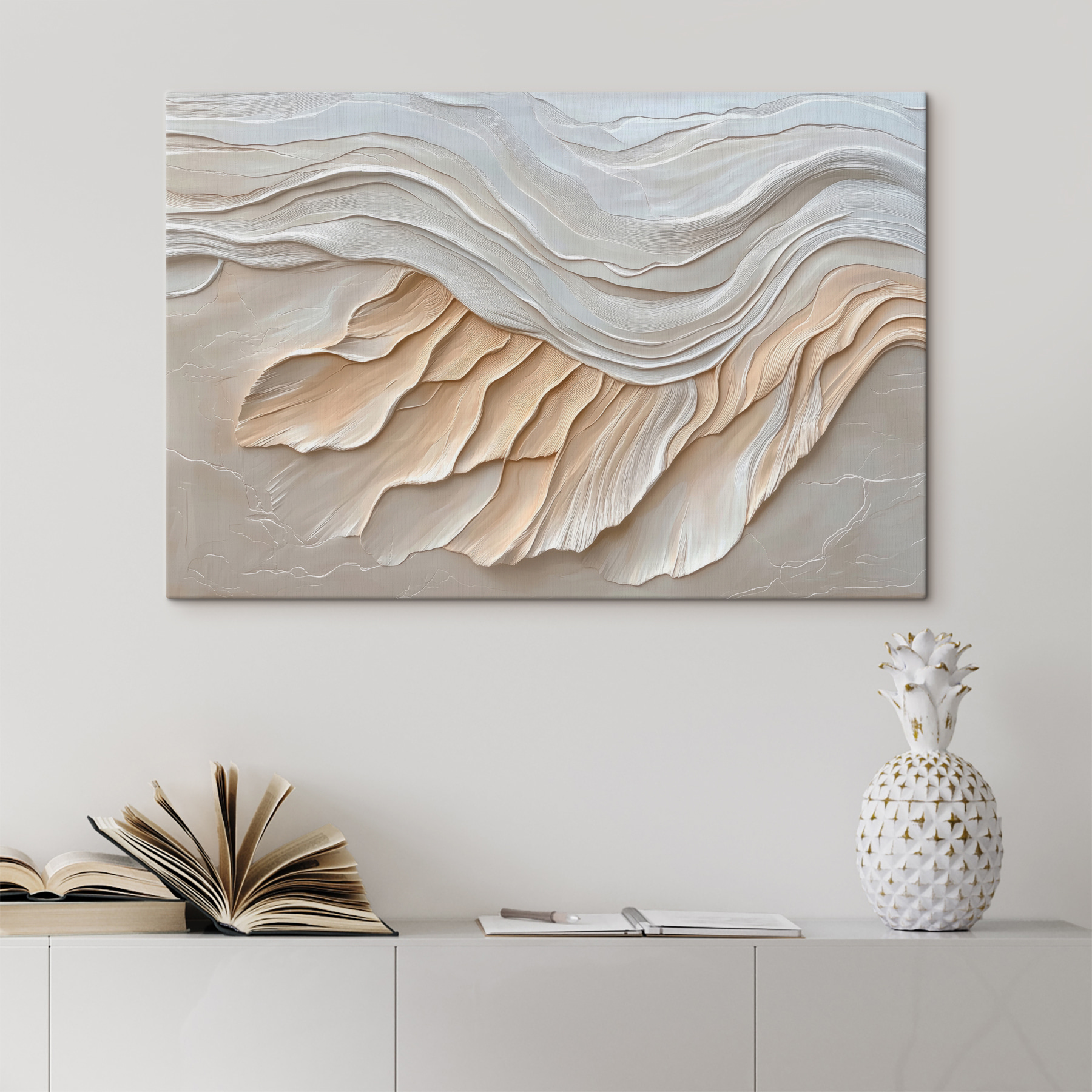 Hier is iets speciaals voor jouw ruimte – Canvas Schilderijen s39894. Echt, hoe prachtig is dit stuk! Met zijn vloeiende abstracte lijnen in romige, warme tinten voelt het aan als het zachtste gefluister van een briesje over een sereen woestijnlandschap. Stel je voor dat het in je woonkamer of kantoor hangt; de sfeer verandert meteen: kalmer, verfijnder. Het is alsof je een stukje rust aan je muur hebt hangen. Dit is niet zomaar kunst; het is een vibe. Echt, de textuur en diepte? Pure magie! Perfect voor wie houdt van een vleugje abstracte elegantie zonder poespas. Probeer het eens; je zult geen spijt krijgen van de relaxte, maar toch eindeloos chique sfeer die het in je huis brengt.