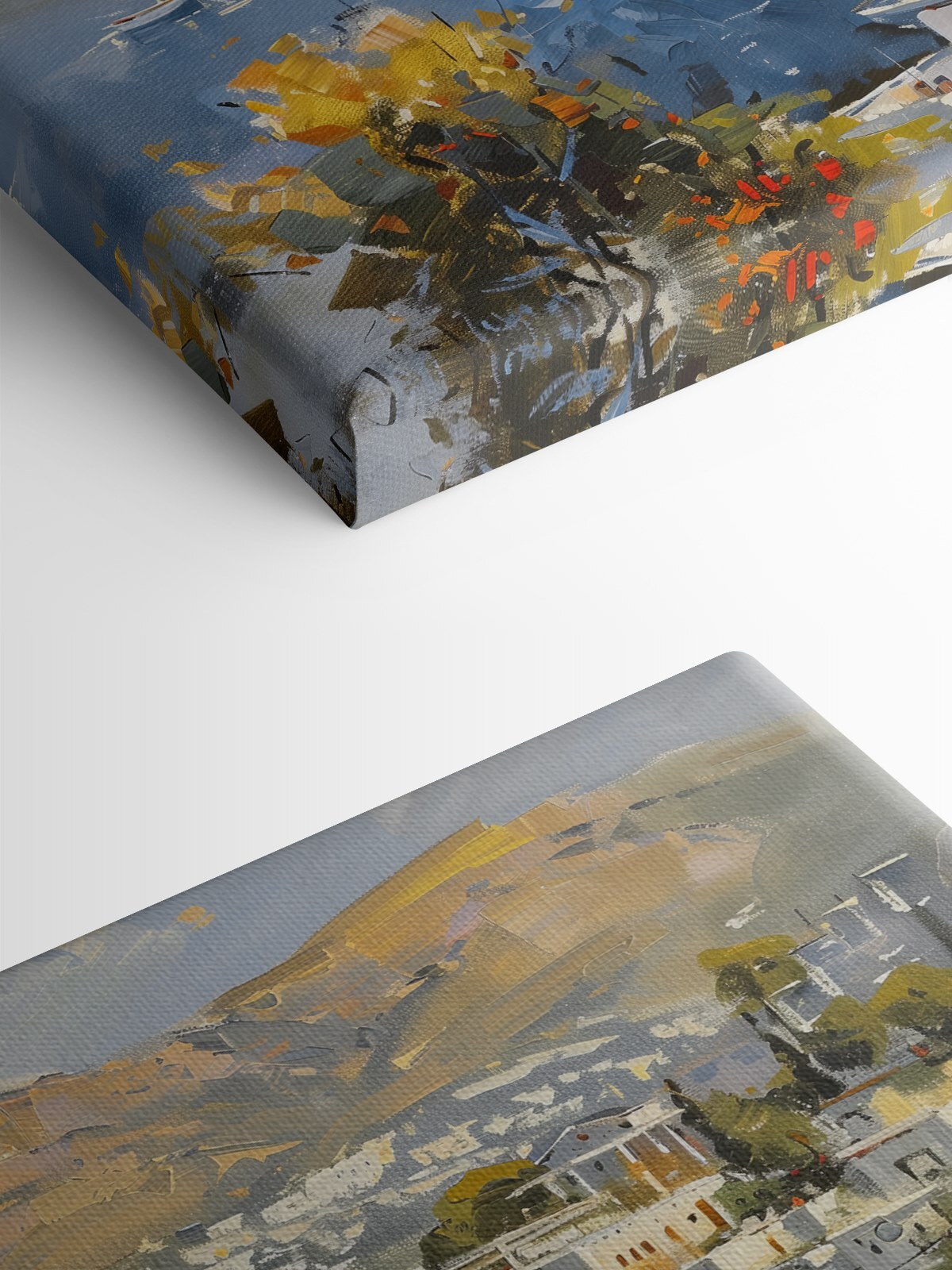 Stel je voor: elke blik op dit kunstwerk voelt als een mini-vakantie. De bootjes dobberen zachtjes op het water, gezellige huisjes genesteld op de heuvels… het is als een venster naar een verre, vredige plek. Ideaal voor iedereen die hunkert naar die kustsfeer zonder het zand in de schoenen!