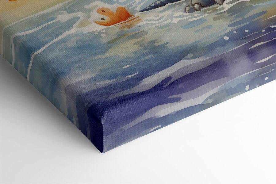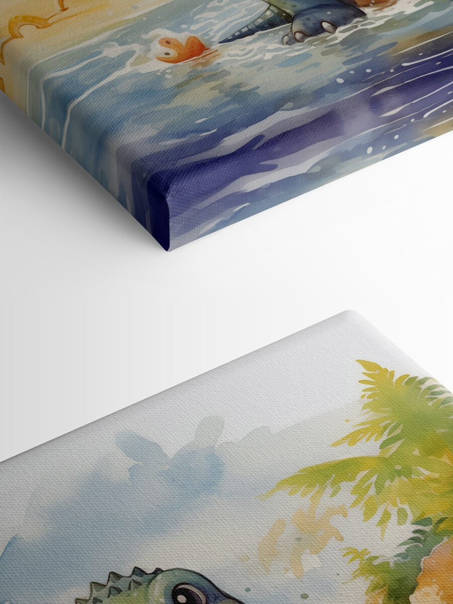 Breng een vleugje eigenzinnigheid in elke ruimte met deze schattige canvasprint met een dinosaurus die vrolijk in het water spettert. De speelse sfeer maakt het perfect voor een kinderkamer, speelhoek of zelfs een eigenzinnige woonkamerhoek die gewoon een vleugje plezier nodig heeft. Stel je een vriendelijke dinosaurus voor die geniet van een zonnige dag op het strand – wie zou daar niet om glimlachen? De felle kleuren en vrolijke scène kunnen vreugde opwekken en inspireren tot talloze speelse verhalen. Of het nu een gespreksstarter is of gewoon een prachtige achtergrond, dit stuk voegt een element van vreugde toe dat voelt als een warme knuffel. Perfect voor alle leeftijden, het creëert zeker een vrolijk hoekje in huis.
