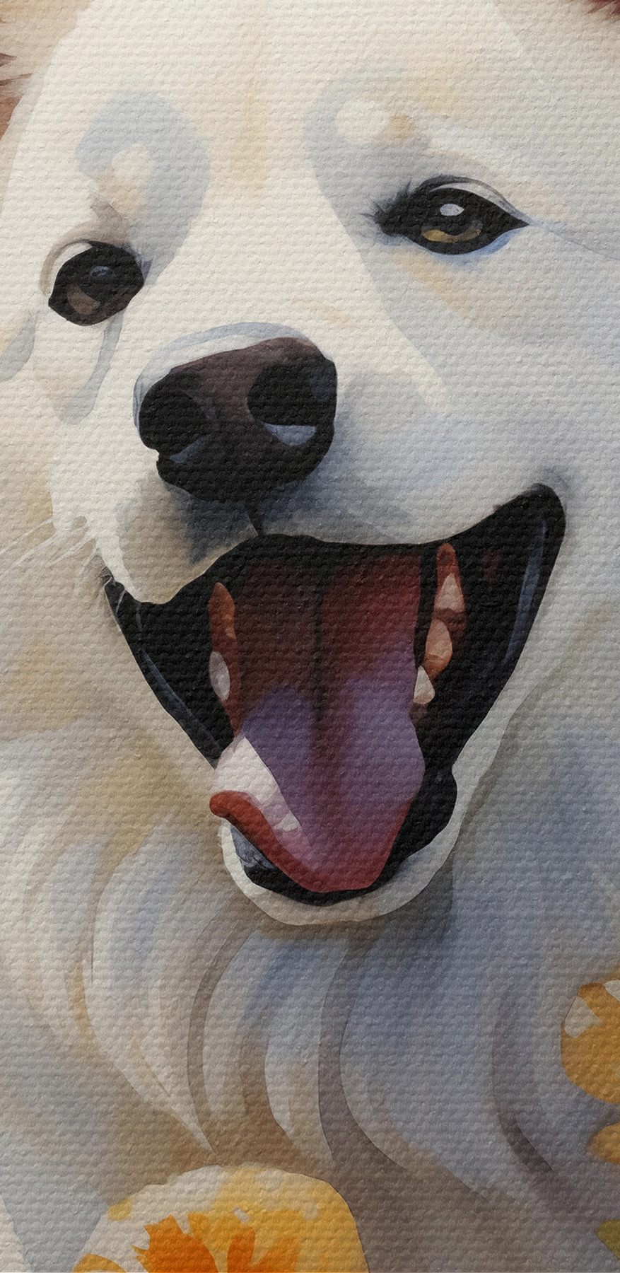 Stel je een warme middag voor, rondfladderende vlinders en een vrolijke pup die geniet van een veld vol levendige bloemen. Deze canvasprint legt die magie perfect vast. Je ziet een schattige witte hond met zijn mond wijd open in een speelse grijns, omringd door een kleurrijke dans van vlinders. Zo’n verrukkelijk tafereel fleurt moeiteloos elke kamer op en voegt een vleugje eigenzinnigheid en vrolijkheid toe. Het is een zachte herinnering dat de eenvoudige momenten van het leven, zoals kijken naar een hond die geniet van een zonnige dag, echt de beste zijn. Perfect voor dierenliefhebbers of iedereen die een dosis geluk aan de muur wil.