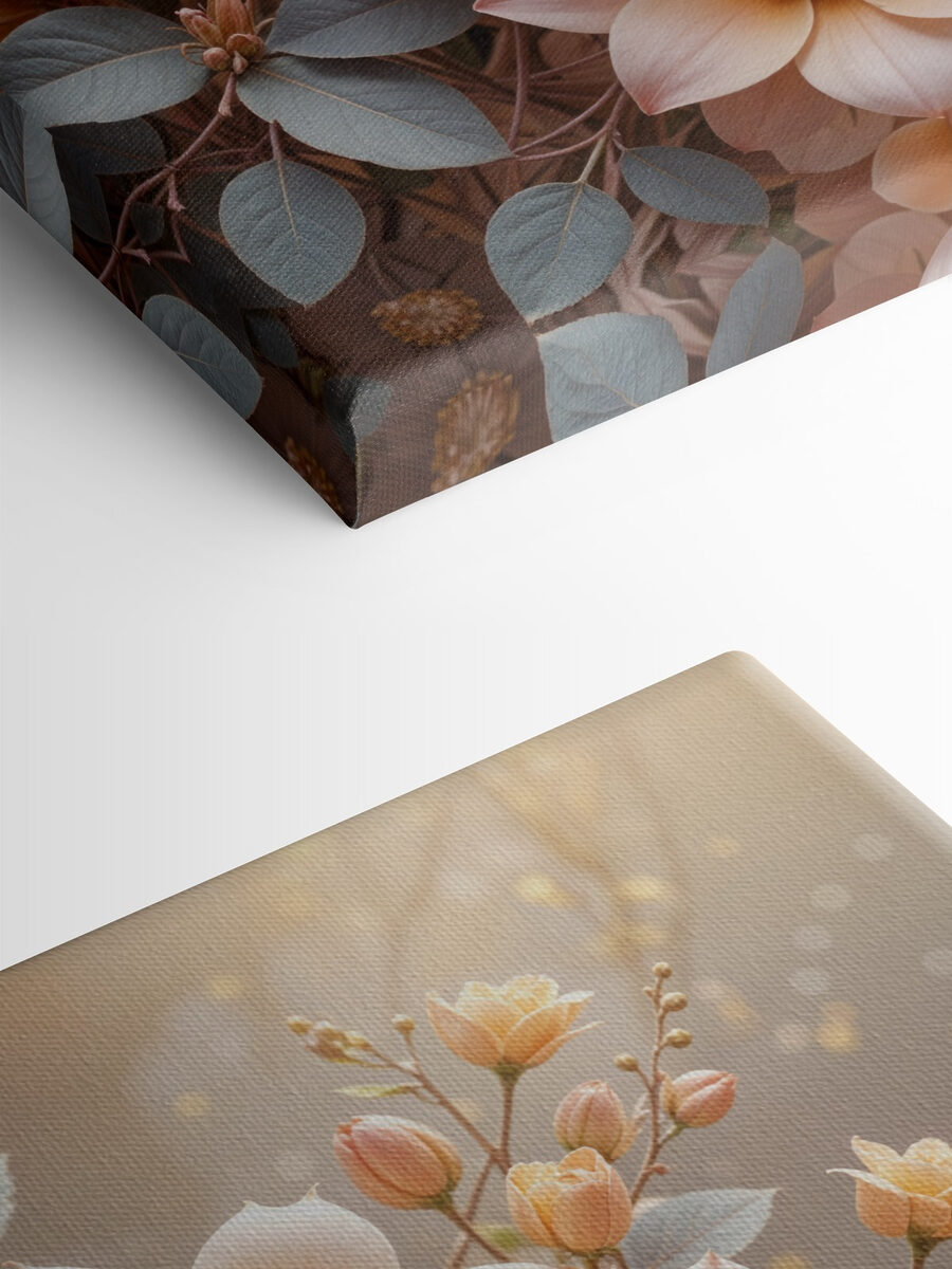 Transformeer elke ruimte met deze prachtige canvasprint met een groep bloemen en delicate bladeren. De zachte tinten van perzik en zacht groen creëren een sfeer die zowel vrolijk als rustgevend is – perfect voor een gezellig hoekje of een lichte hal. Stel je voor dat je langsloopt, een glimp opvangt van deze schoonheid en denkt aan een tuin in volle bloei, zelfs op een regenachtige dag. Dit stuk voegt niet alleen kleur toe; het brengt warmte en een vleugje natuur binnenshuis. Hang het op en zie hoe het de sfeer in de kamer direct verbetert. Het is als een frisse wind aan je muur!