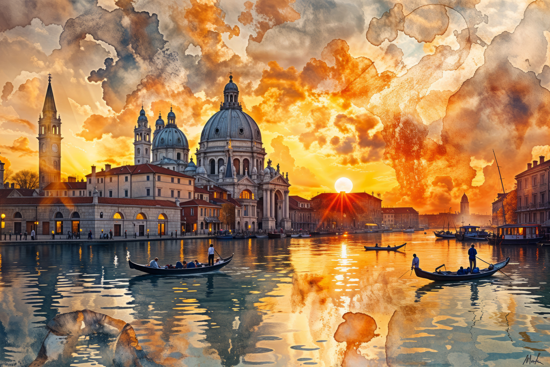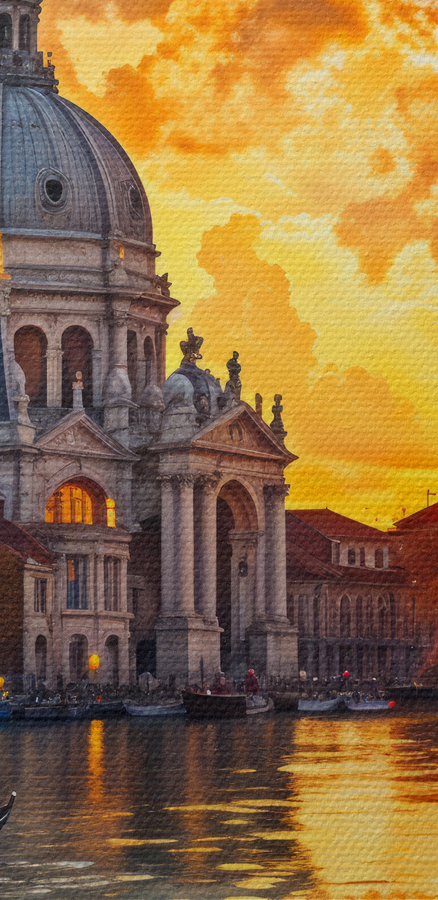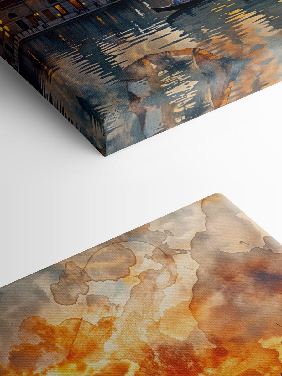 Verander elke muur in een serene ontsnapping met deze betoverende canvasprint. Er ontvouwt zich een schilderachtig tafereel met rustig water dat een prachtige zonsondergang en charmante architectuur weerspiegelt. Stel je de zachte geluiden voor van een voorbijglijdende boot, misschien een lach in de verte of het zachte geklots van roeispanen in het water. Het is bijna alsof je een stukje magie van een reis in huis haalt. Dit kunstwerk is perfect om een vredige sfeer te creëren en stimuleert dagdromen over kustwandelingen en rustige momenten aan het water. Het is een verrukkelijke toevoeging die aanzet tot gesprekken en een gevoel van rust. Wie wil er nu niet een stukje sereniteit in huis?