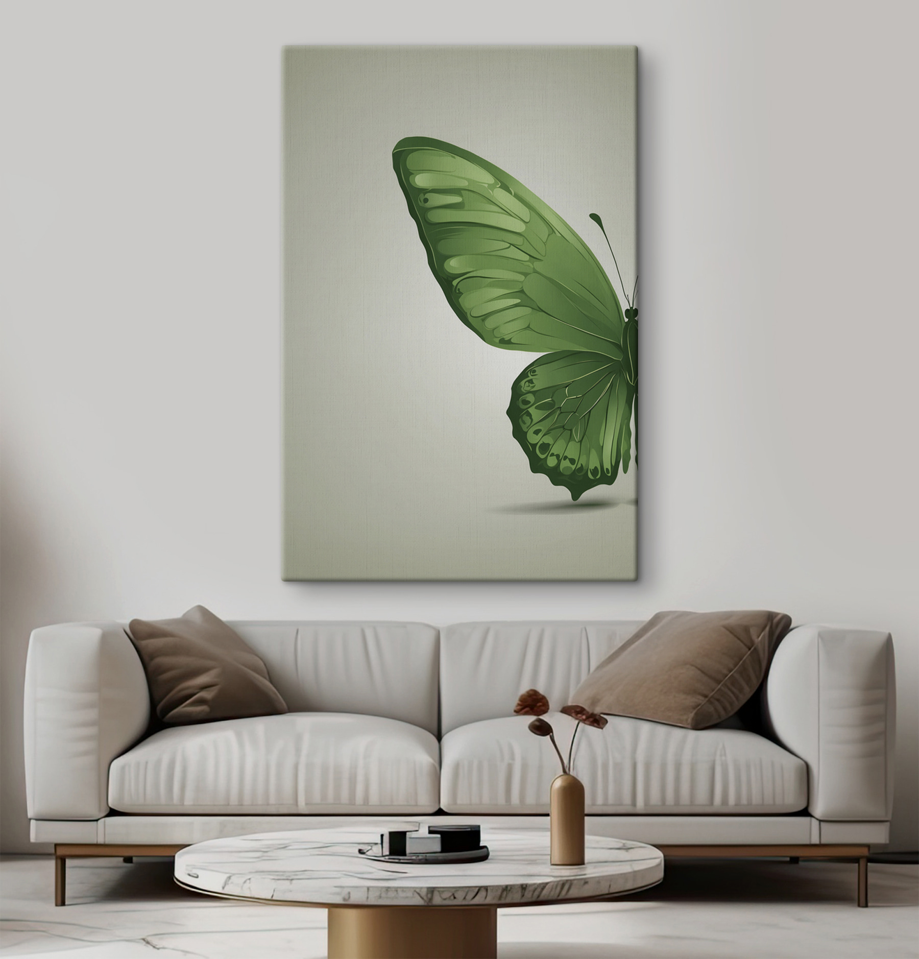 Transformeer elke kamer met deze prachtige canvasprint met een groene vlinder, met de vleugels in de aanslag om te gaan vliegen. Vlinders hebben iets, toch? Ze herinneren ons eraan om verandering en schoonheid in het gewone te omarmen. Stel je dit voor boven een gezellige leeshoek of in een hal waar vrienden niet anders kunnen dan even stoppen en het bewonderen. Het levendige groen knalt tegen een gedempte achtergrond en voegt een verfrissend tintje toe aan je interieur. Dit kunstwerk is perfect voor natuurliefhebbers of iedereen die van een grillige inrichting houdt en heeft die “wow”-factor waardoor iedereen zich een beetje lichter voelt als hij of zij er in de buurt is.