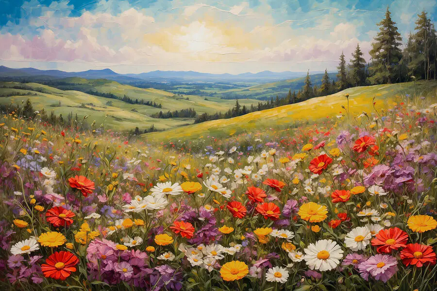 Stap in een levendige droom met deze prachtige canvasprint van een kleurrijk bloemenveld. Het is als een vrolijke plons natuur direct aan je muur, die uitnodigt tot warmte en een vleugje vrolijkheid. Stel je de zoete geur voor van bloemen die door de lucht zweven terwijl je kijkt naar de rode, gele en paarse kleuren die speels dansen in de wind. Deze print is perfect om een woonkamer mee op te fleuren of een kantoor mee in te richten. Hij decoreert niet alleen, maar neemt je mee naar zonovergoten weiden waar rust heerst. Wie wil er nu niet dagelijks aan herinnerd worden dat schoonheid overal is?