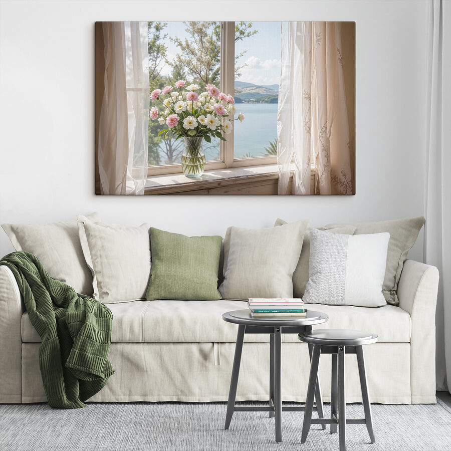 Stel je voor dat je elke dag wakker wordt met dit prachtige uitzicht… “Canvas Schilderijen s40151” brengt een uitbarsting van natuurschoon rechtstreeks naar je kamer. Zachtroze en witte bloemen tegen een serene achtergrond van een meer – het is net je eigen persoonlijke paradijs. Het aquareleffect voegt een dromerige kwaliteit toe, bijna alsof je de verse bloemen kunt ruiken en het zachte briesje door de transparante gordijnen kunt voelen. Perfect om elke ruimte op te fleuren – een manier om die muren te laten glimlachen! Of je nu een liefhebber bent van mooie kunst, een natuurliefhebber of gewoon iemand die een goede dosis bloemencharmonie waardeert, deze print is het helemaal. Het is de bedoeling om een vleugje rust, een vleugje kleur en een heleboel vreugde aan je huis toe te voegen. Wie zou daar niet van houden?