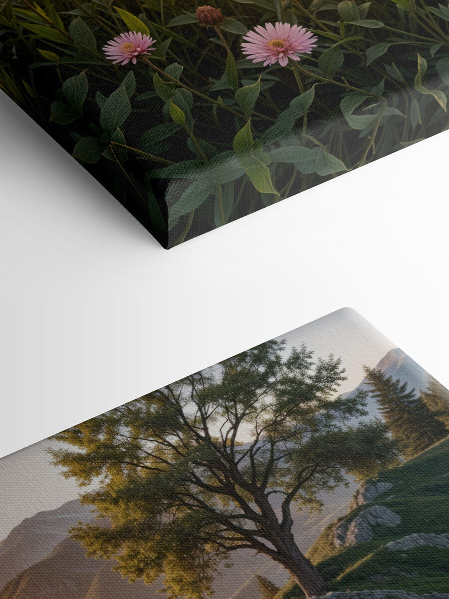 Stel je voor dat je elke dag wakker wordt met deze schoonheid! Deze canvasprint, genaamd “Canvas Schilderijen s40154”, is als een frisse berglucht in je huis. Het staat onder “Bloemen Canvas Kunst” en “Natuur Canvas Kunst” maar geloof me, het voelt alsof het in een categorie op zichzelf staat-“Take Your Breath Away Art”! De manier waarop die zachtroze madeliefjes zich uitstrekken naar een zon die op het punt staat om achter die majestueuze bergen te verdwijnen… het is pure magie. Het is als een scène uit een droom waarin je zou willen verdwalen. Voeg dit toe aan je interieur en creëer een klein toevluchtsoord. Het is bijna een mini-vakantie aan je muur!