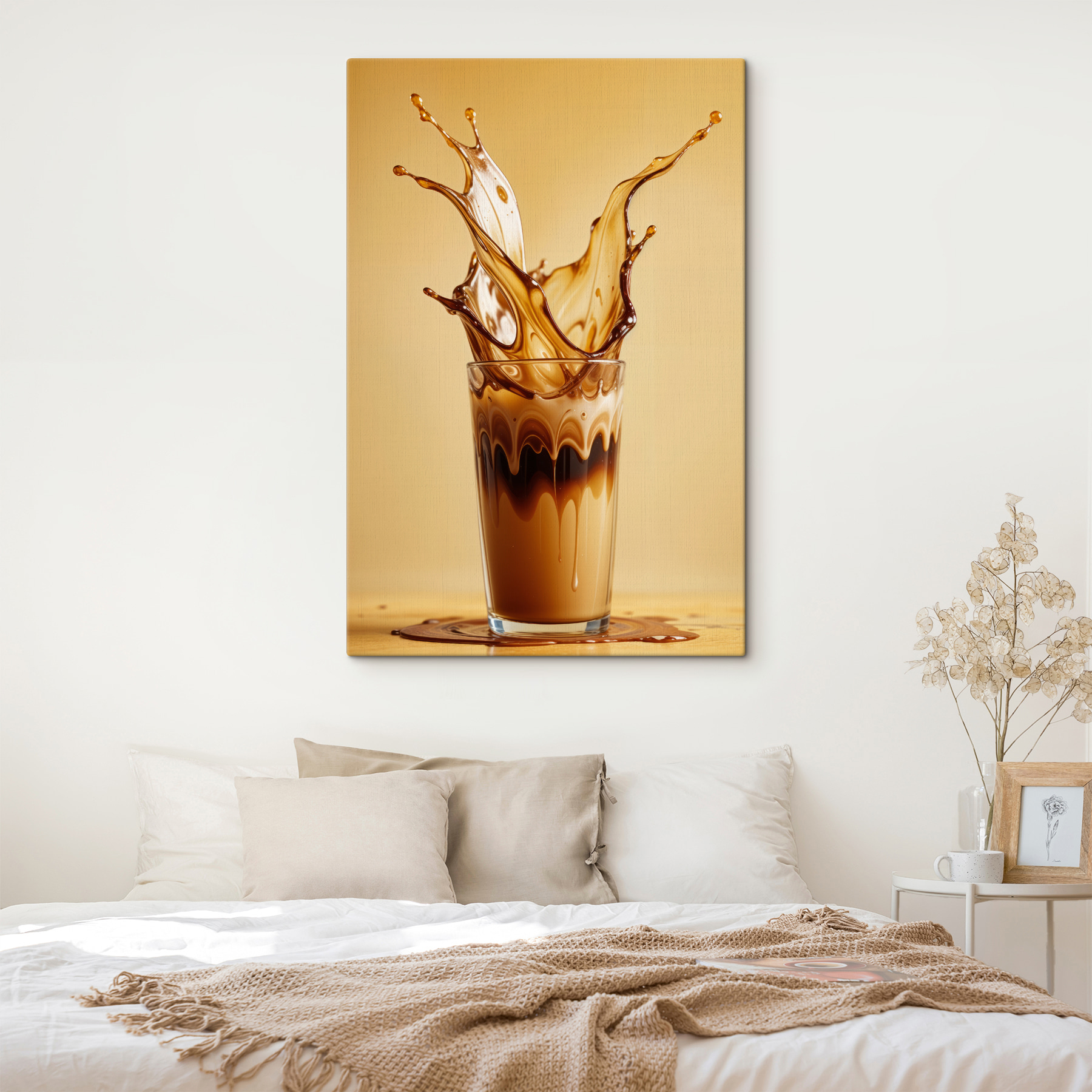 Ooit een koffieplons gezien die eruitziet alsof hij danst? Dat is de vibe van deze canvasprint, alsof de tijd even bevroren is op de meest levendige manier. Stel je deze vette, romige explosie van koffie eens voor aan de muur van je keuken… Gasten komen binnen, zien dit en bam! Instant gespreksonderwerp. Perfect voor cafeïneliefhebbers of iedereen die van dynamische, opvallende kunst houdt. Het is een soort opkikkertje in de ochtend, maar dan aan de muur. Je kunt de “splash” bijna horen en de energie voelen die het met zich meebrengt. Eigenzinnig en verrukkelijk – net als de beste momenten in het leven.